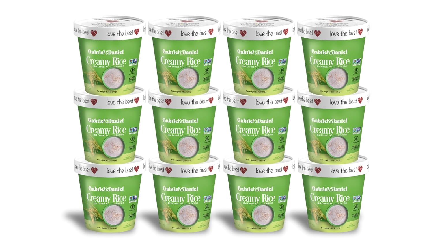 Gabriel & Daniel Creamy Rice Hot Cereal Cup – Non-GMO, Pure and Organic Gluten Free Cereal – Rich in Iron & Essential Nutrients for a Nourishing and Instant Breakfast – Quick & Easy Meal (Pack of 12)