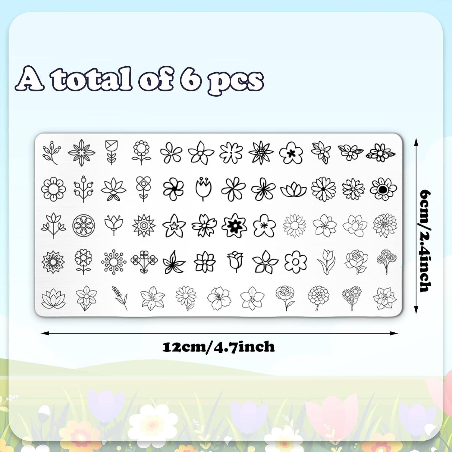 - What You Get: The package includes 6 pcs nail art stamping plates in various designs, perfect for daily and party nail art making. Please note that stamp, scraper and plastic back cover are not included