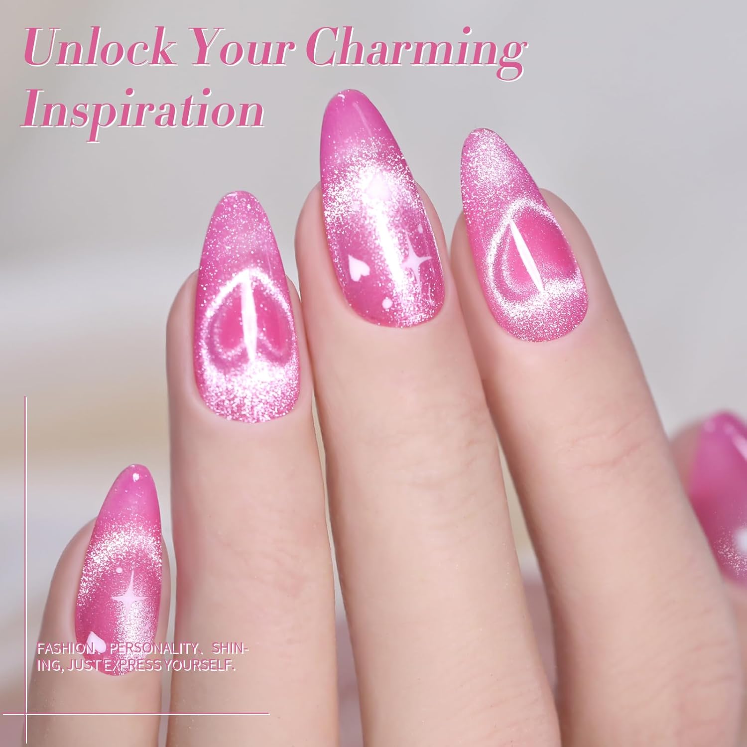 Born Pretty Cat Magnetic Eye Gel Nail Polish,Pink Glitter Cat Magnetic Gel Nail Polish Love Letter Magnetic Nail Polish for Nail Art Manicure Salon DIY at Home 15ML
