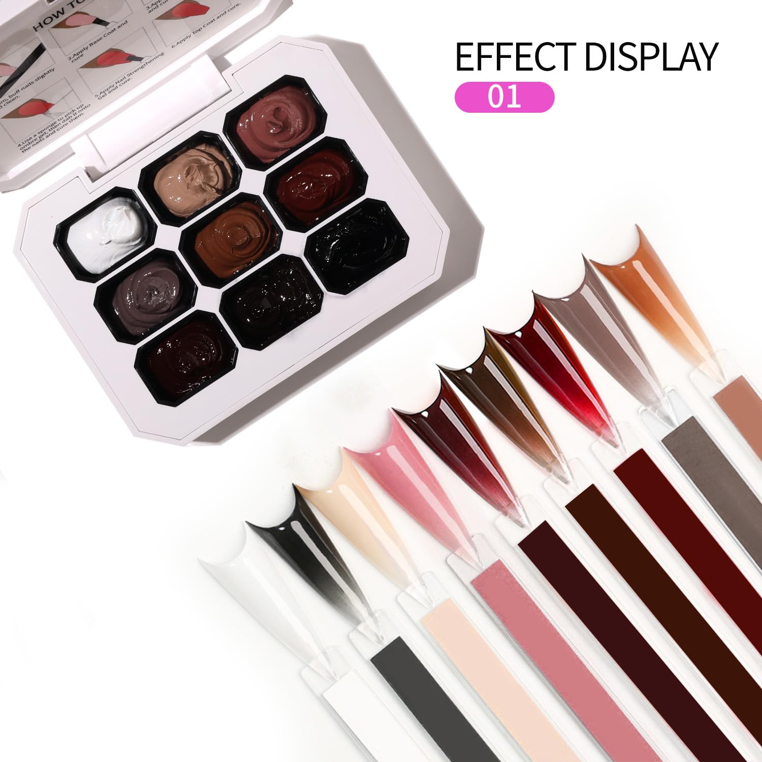 - [Soft blush gradient effect]:The patting gel has 9 highly saturated color combinations, the nail polish palette easily create a natural "blush" effect through sponge superposition, the gel ombre color creating a hazy and soft sense of fingertip, the ombre gel polish suitable for vacation, daily commute, dating style.