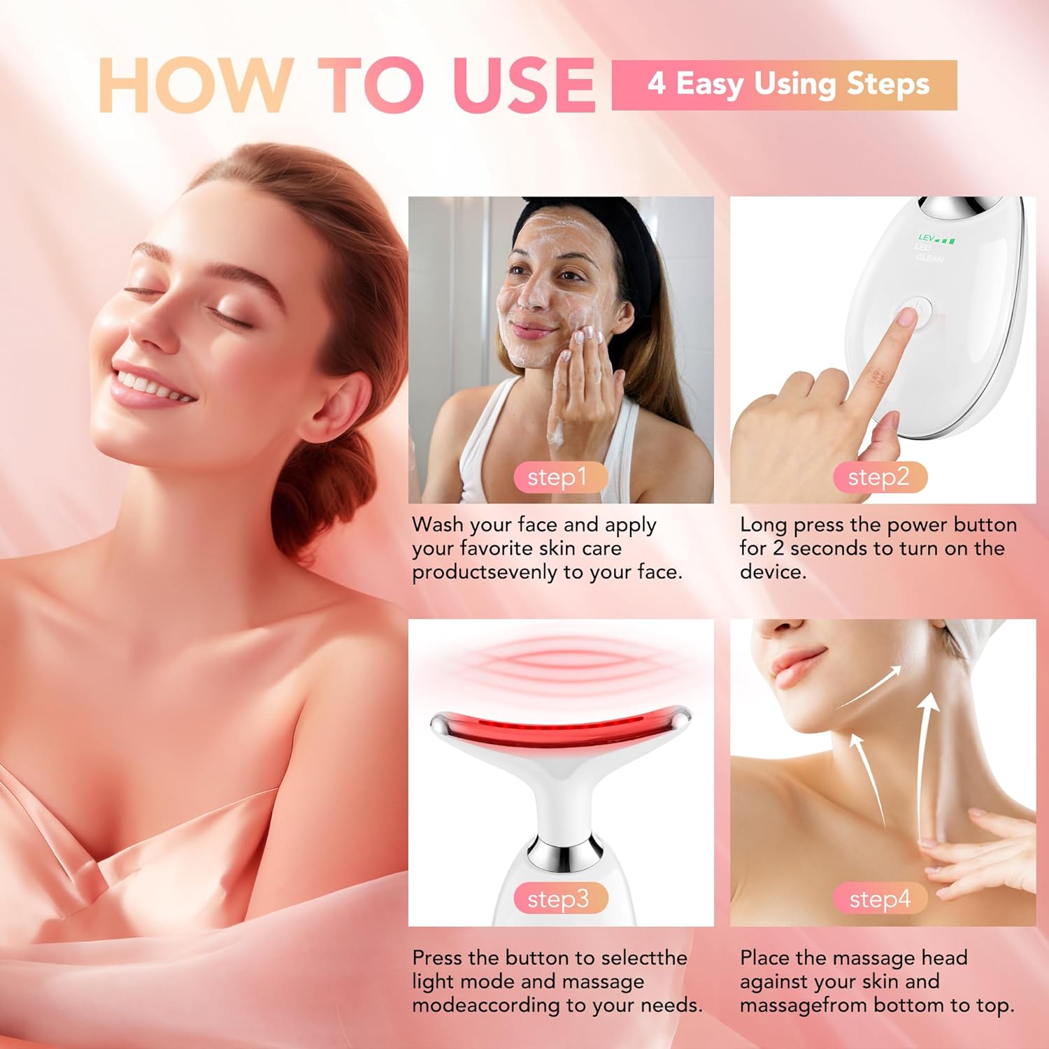 - Our Facial Massager offers 3 modes and heating of operation, including vibration and heating, providing a versatile and customizable experience. Its ergonomic design ensures a comfortable grip for effortless use