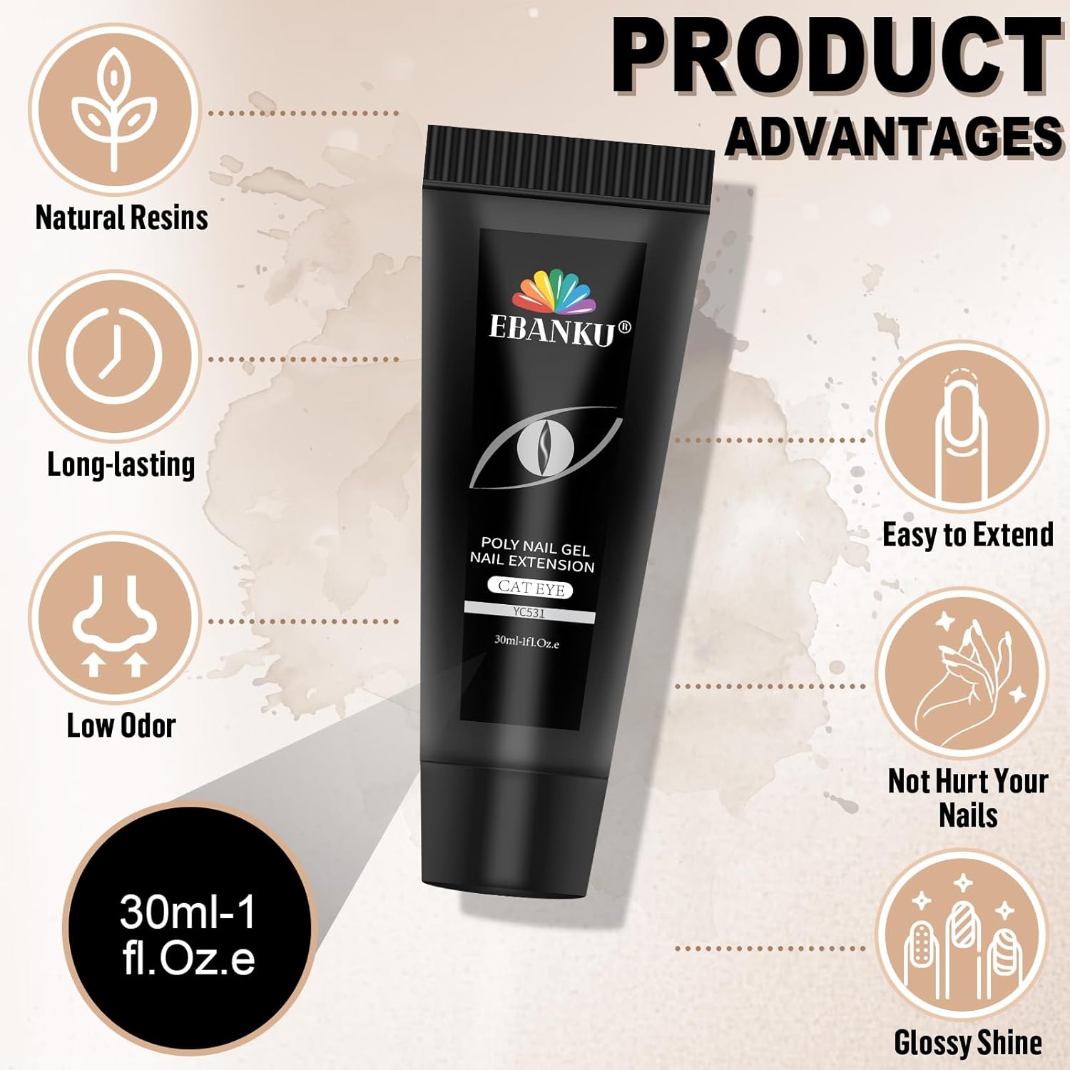 - 【Wide Application & High Gloss of Poly Gel Kit】You can use cat eye poly nail gel kit for poly gel nail, nail sculpting, nail art with rhinestone and other artistic creations of the nail extension gel kit to make you stand out from the crowd by this poly gel nail kits. Magnetic poly gel flash colors in poly gel nail kit, this poly gel extension nail kit is the perfect gift for all nail lovers with an even better color system.