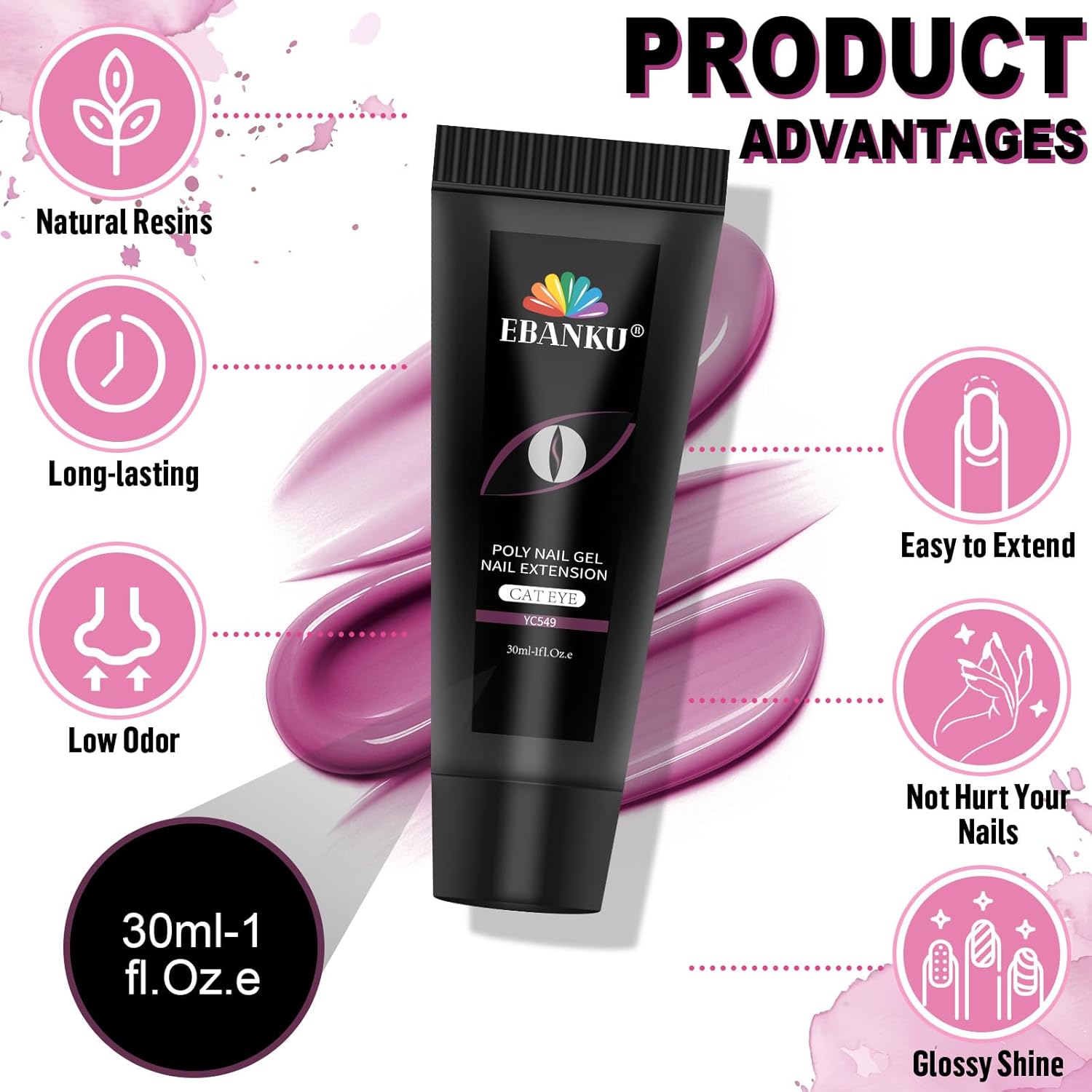 - 【Glitter and Cat Eye Effect】EBANKU glitter and cat eye nail extension gel kit have glitter and cat eye poly nail gel are optional for you to DIY more fashion nails at any occasions, anniversary, wedding, dating, party etc. NOTE: When using the magnet, different light and angles will create a variety of amazing cat eye effects.