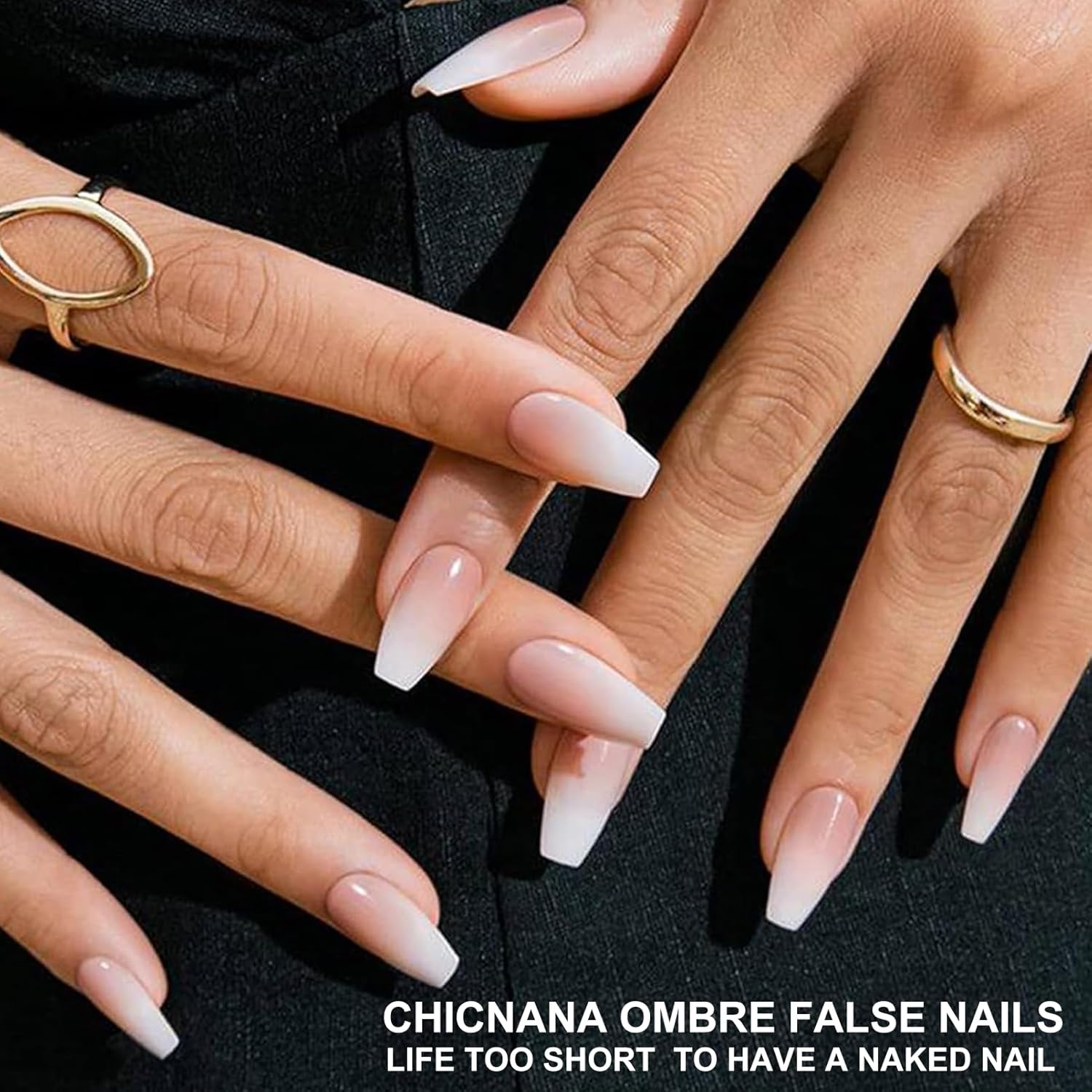 - 【Perfect Salon Stick On Nail Set】This ChicNana Ombre False Nails Kit includes 240pcs French style square press on nails glossy, all necessary tools as files*2, stainless steels cuticle pusher*1, 15ml nail glue*1 and the box with press on nails. Ombre false nail is a basic style in nail art and is a must have set for every girl who loves nail art