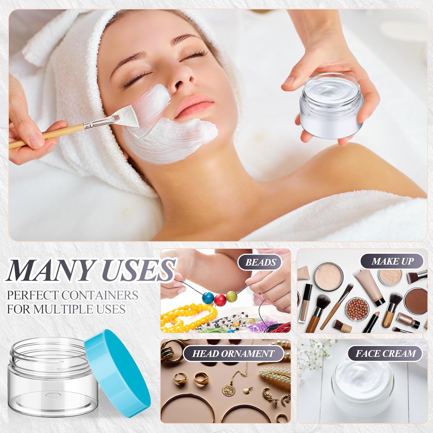 SATINIOR 24 Pieces Empty Clear Plastic Jars with Lids Round Storage Containers Wide Mouth for Beauty Product Cosmetic Cream Lotion Liquid Butter Craft and Food(Blue Lid,1 oz)