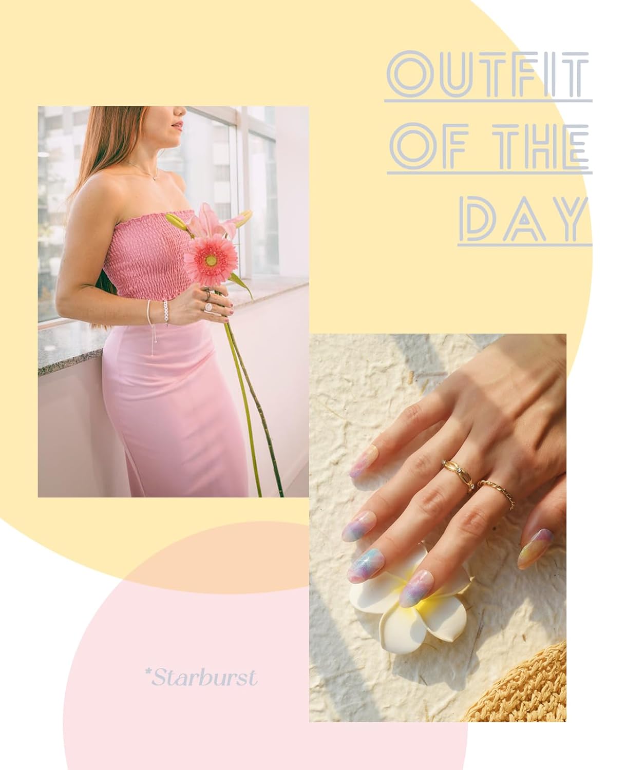 Semi Cured Gel Nail Strips, 20 pcs Nail Wraps, Glaze Stickers, Salon Quality French Manicure, Full Decal Gel Polish Strips, Long Lasting SCG, Easy on, UV Required (Starburst)