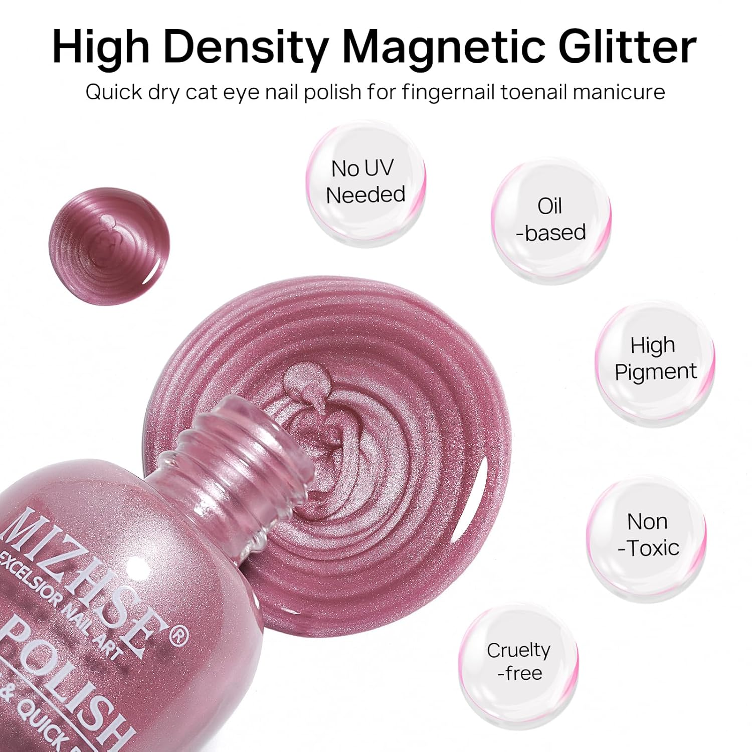 MIZHSE Quick Dry Cat Eye Nail Polish, Pink-Purple Magnetic Nail Polish with Magnet, Air Drying Fast 15ml Cateye Nail Lacquer for Women Girls Non-Gel Nail Art Manicure DIY Home