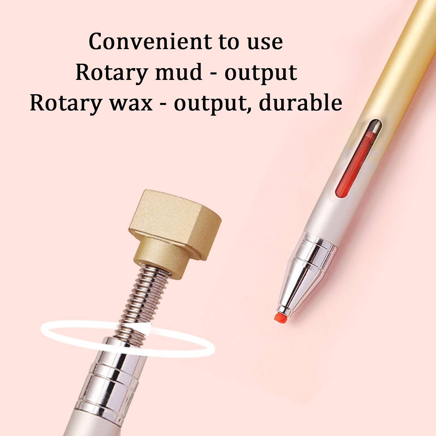 WOKOTO 1 PCS Nail Art Rhinestone Picker Pens With Spare Silicone Clay Tool Yellow&Silver Gradient Rotating Push Nail Diamond Art Painting Dotting Pen Refillable Wax Pen For Nails Gems Picker Tool