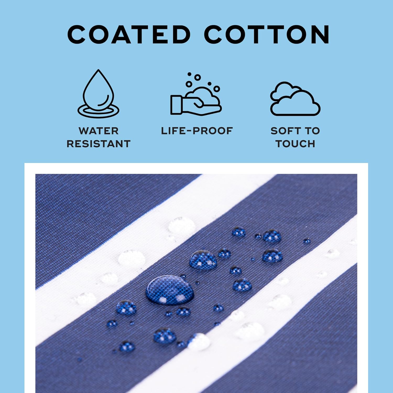 • No-Worry Coated Cotton Wipes Clean Easily: Made of 100% cotton twill that's heat-laminated with a water-resistant coating, this lightweight, super-durable fabric resists dirt, stains, and moisture. Spills and smudges? Just wipe clean!