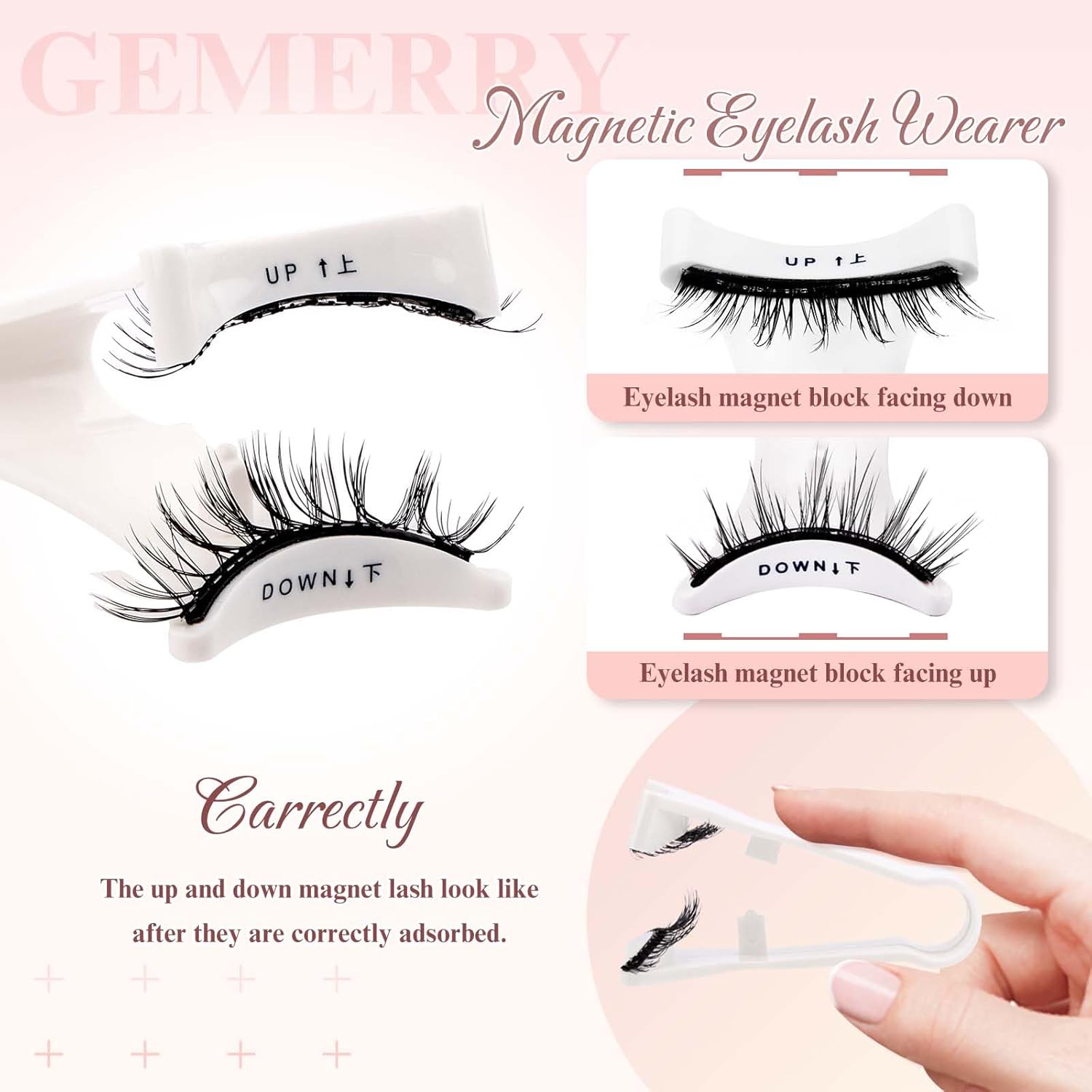 GEMERRY Magnetic Eyelashes with Applicator Magnetic Lashes Natural Look Reusable Soft Strip Lashes No Glue No Eyeliner Needed Lash Applicator Tool Kit Easy to Wear and Remove