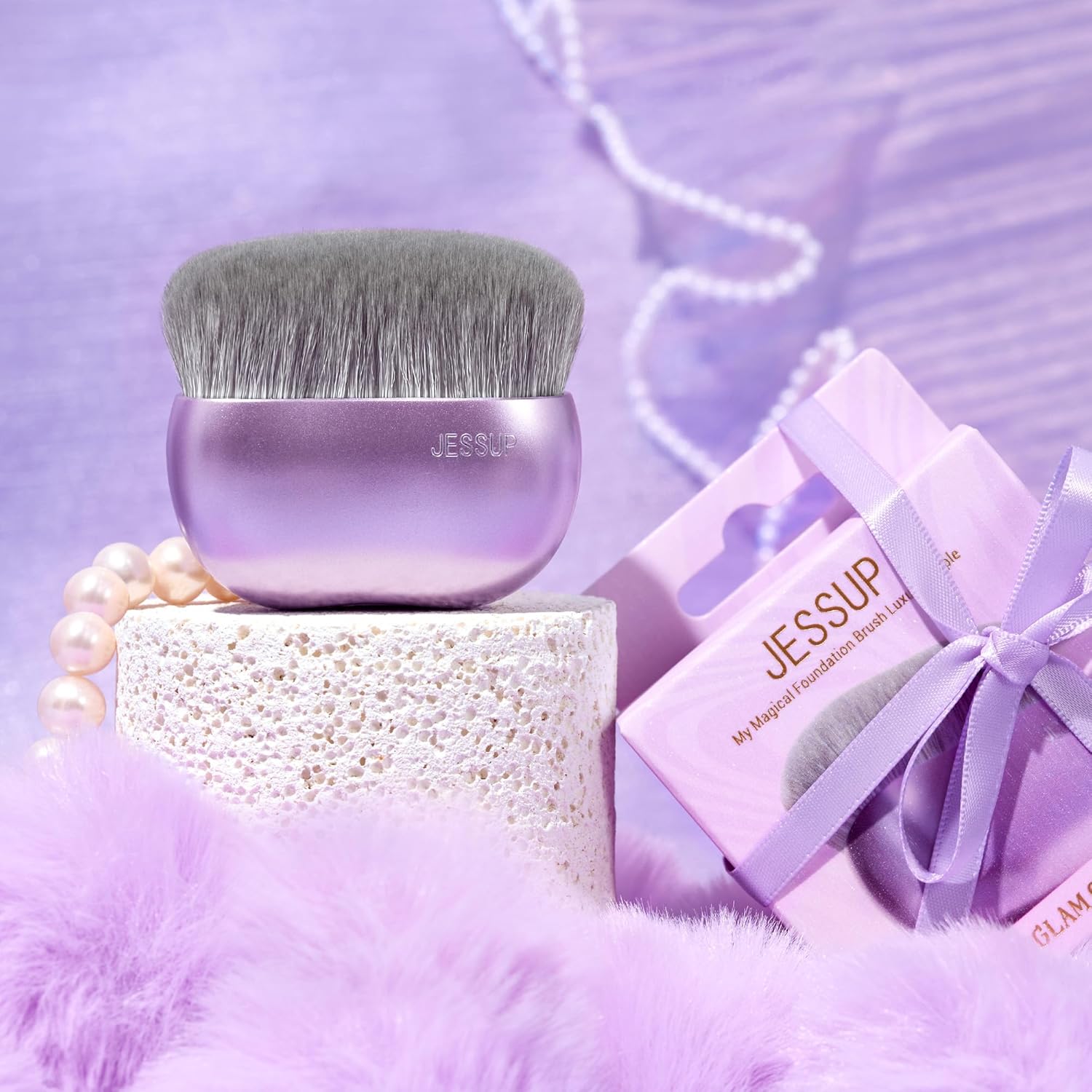 - Ergonomic & Precision Brush Head Design: Featuring Jessup's exclusive top-shape and comfort-crafted curves, this kabuki foundation brush is built for precision and ease. Its ergonomic handle allows for easy gripping and controlled application, while the flat top foundation brush design ensures smooth, even coverage, even in hard-to-reach areas like around the nose or under the eyes. Blending makeup has never felt so natural and effortless.