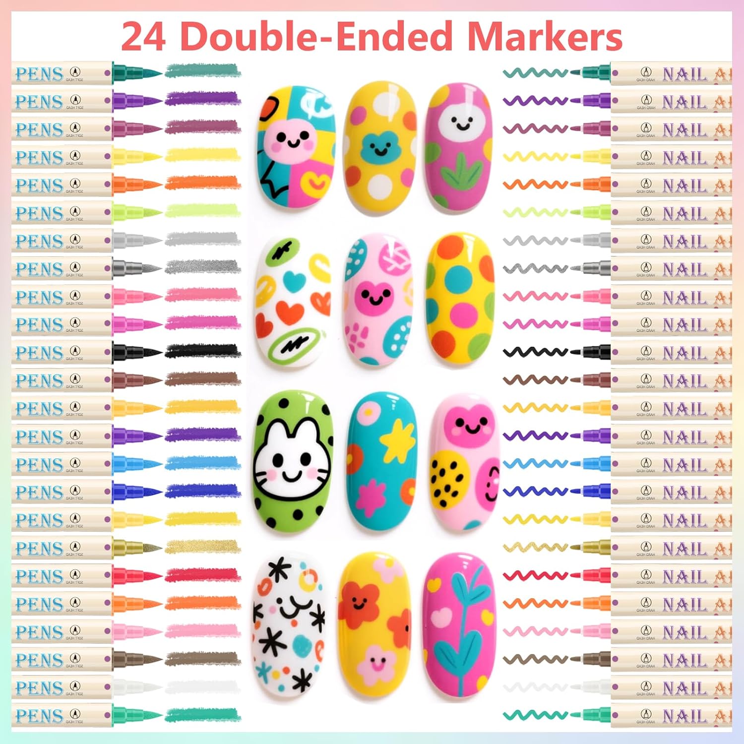 - 【24 Vibrant Colors for Versatile Creations】This Ponhey nail art pens set includes 24 highly saturated colors, meeting diverse daily nail art needs. From simple solid color matches and color-block designs to holiday-themed patterns, it helps you achieve salon-level manicures at home, keeping your nails away from monotony