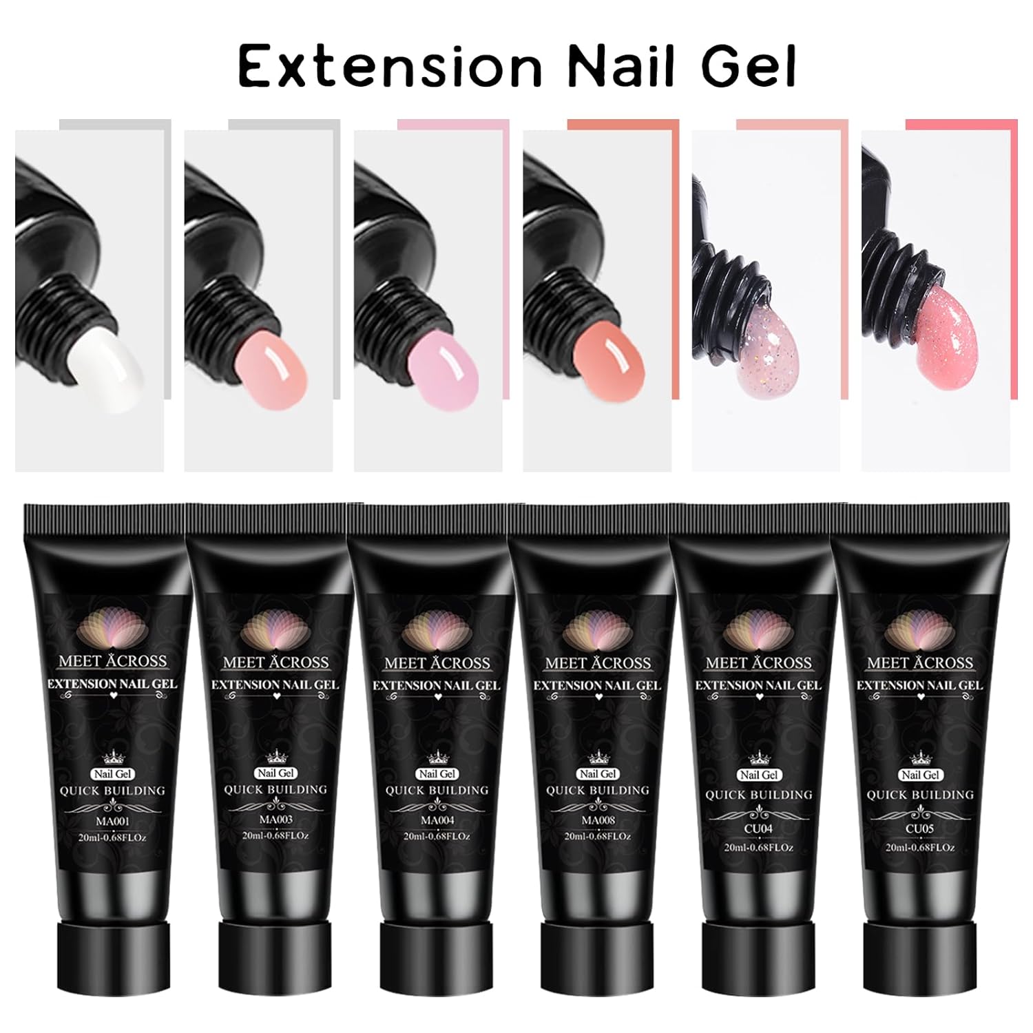 MEET ACROSS Poly Extension Gel Kit - 6 Colors All Season Nude Glitter Pink Sheer Poly Nail Gel Kit Strong Builder for Nail Art Extension Builder Gel Home Nail Salon Gift for Women