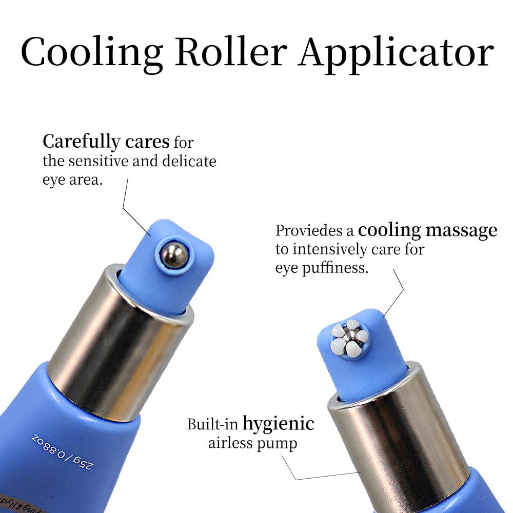 - Cooling roller applicator gently cares for the sensitive skin around the eyes.