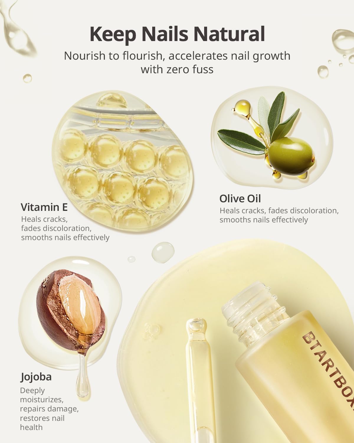 • FROM BRITTLE TO RESILIENT: Natural organic formula including olive fruit oil, jojoba oil repairs damaged keratin and accelerates nail growth, help the damaged nail beds recover from brittle to resilient.