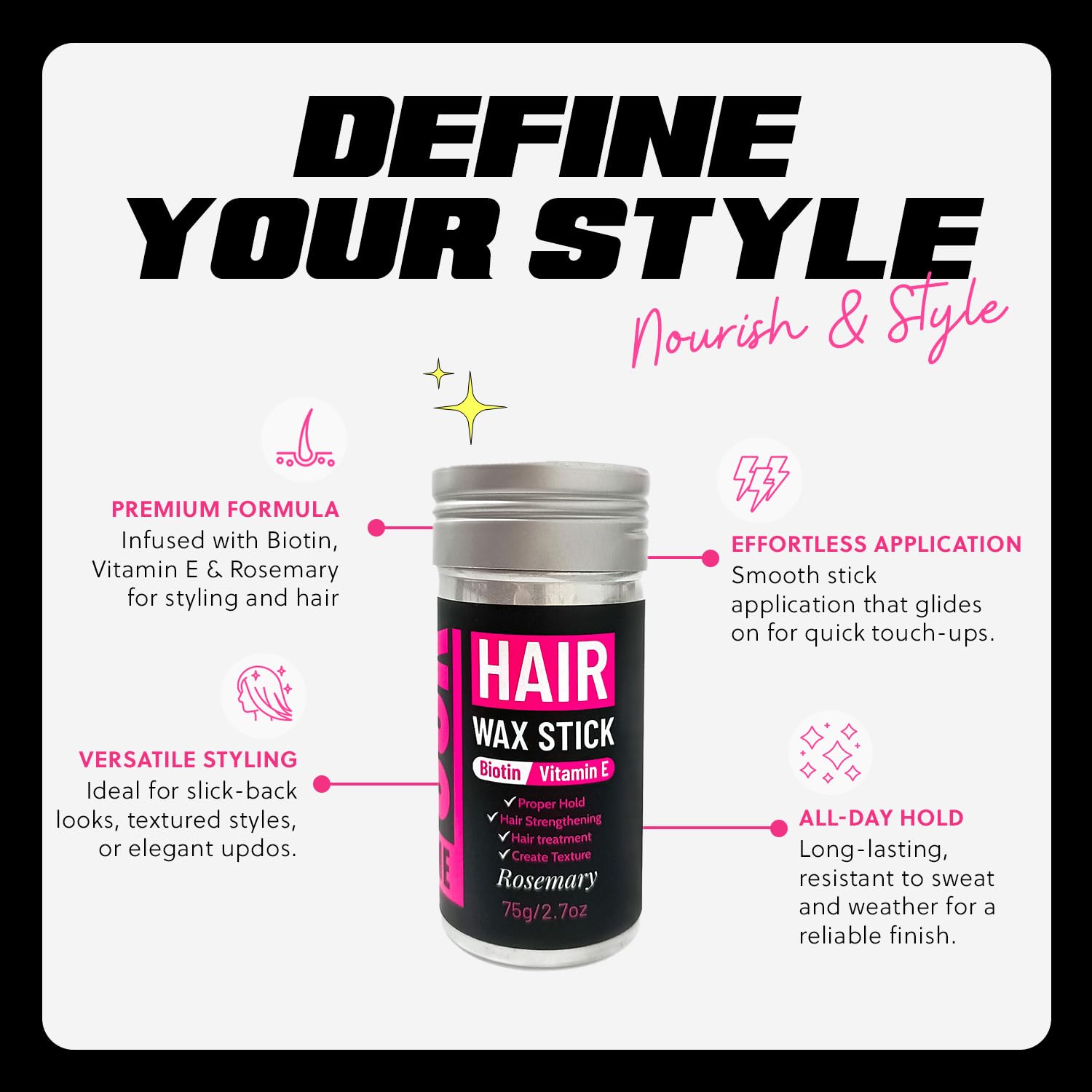 Hair Wax Stick 2.7 fl oz – Strong Hold, Tames Flyaways – Biotin, Vitamin E & Rosemary Formula – Hair Wax Stick for Men & Women, Slick Back Styles, Supports Healthy Hair for All Types
