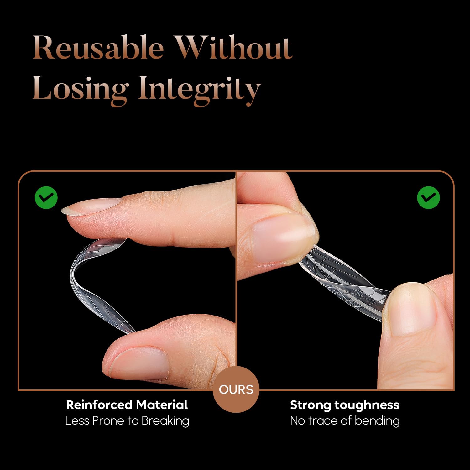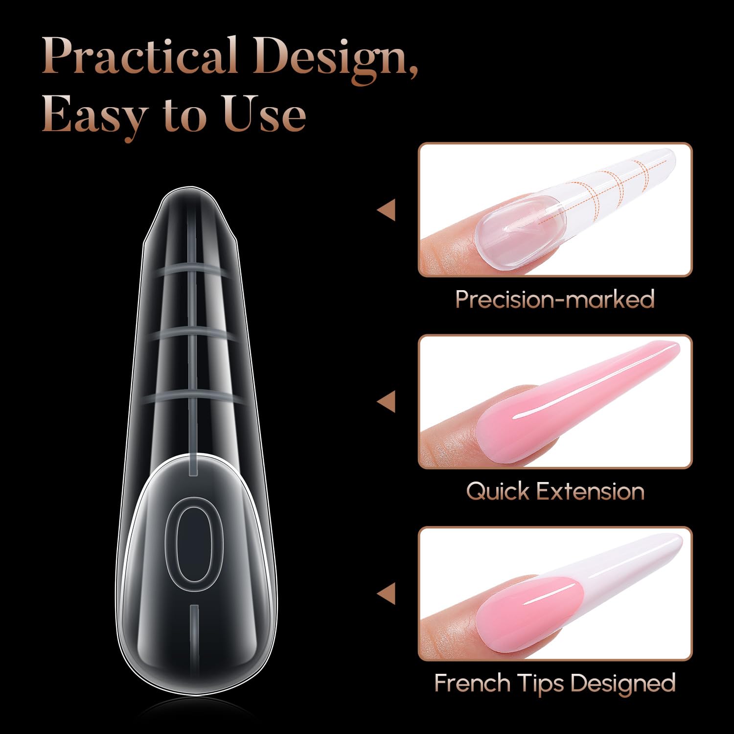 • Salon-Quality Material: Crafted from premium ABS material, our gel dual forms are thin, natural-looking, yet durable and bendable without creasing. The flexible silicone tips offer a gentle texture that is easy to remove without damaging your nail extensions.