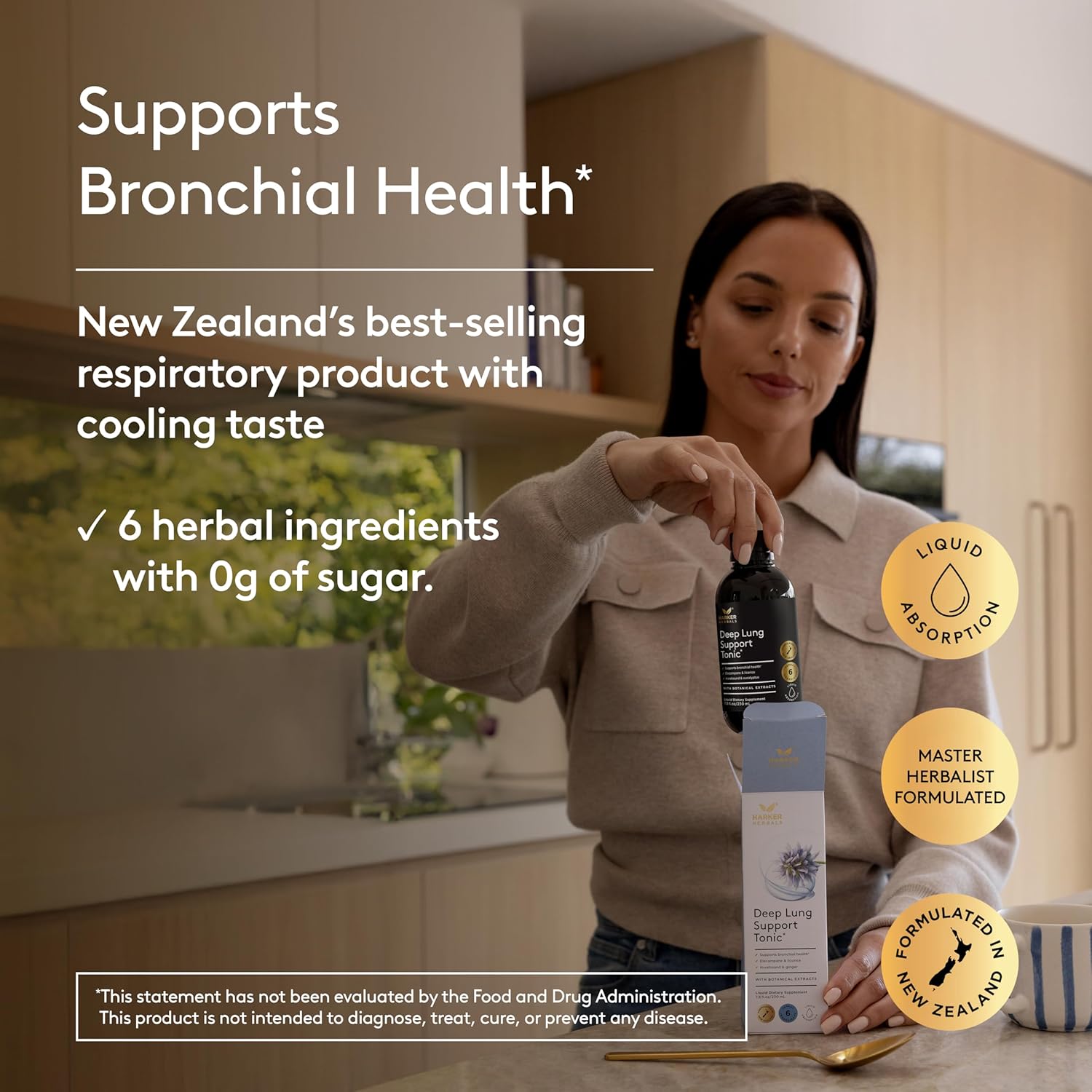 Deep Lung Support Tonic, Traditional Herbal Formula for Respiratory Wellness with Elecampane, White Horehound & Licorice Root, Liquid Absorption, Menthol Flavor, Plant-Based, 7.8 floz