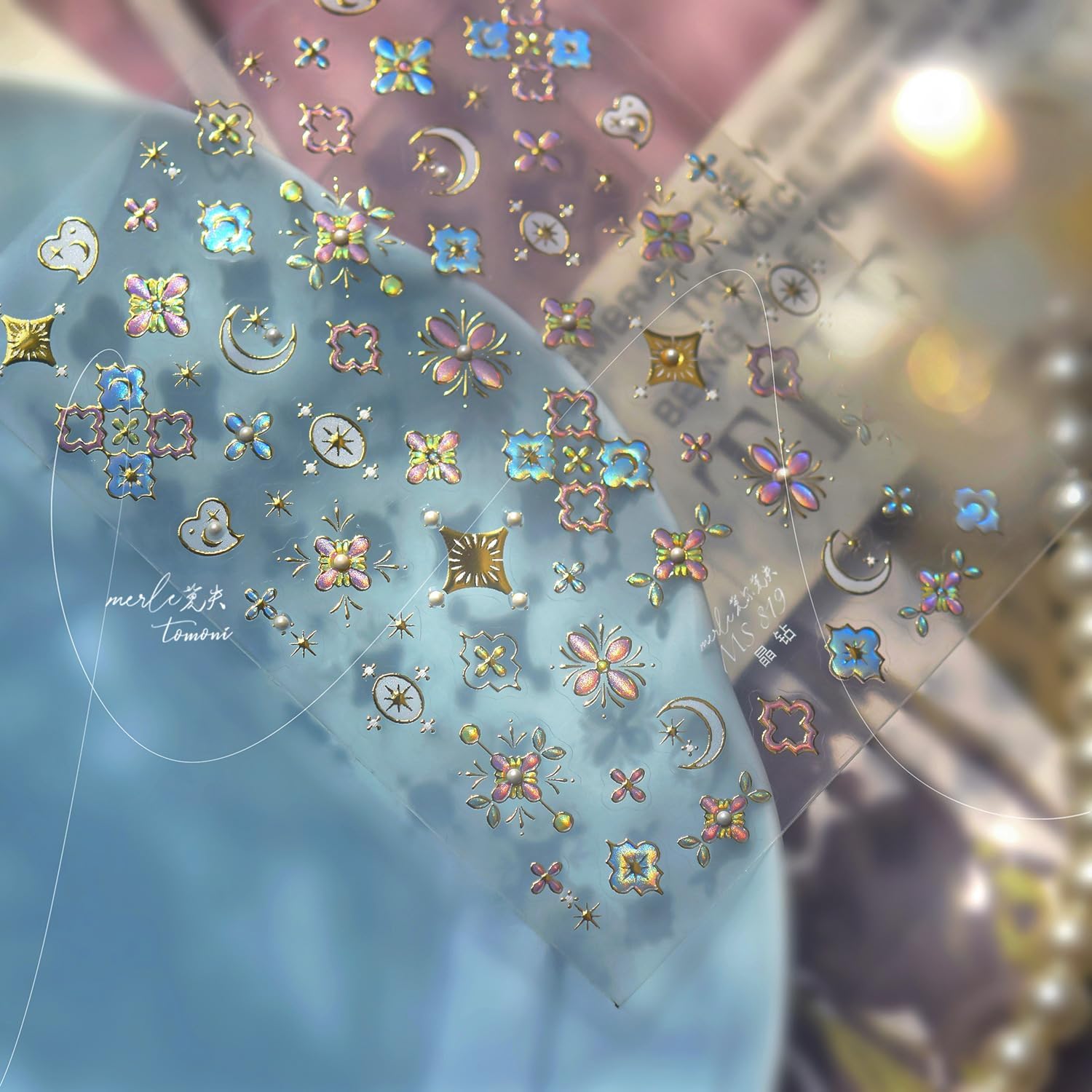 - Flower Nail Decals: 1 sheet of 5D embossing diamond flower nail stickers give people an intuitive and advanced exquisite feeling. Floral five-petal star flower diamond elements summer design nail decals are perfect for decorations for your spring summer nails.