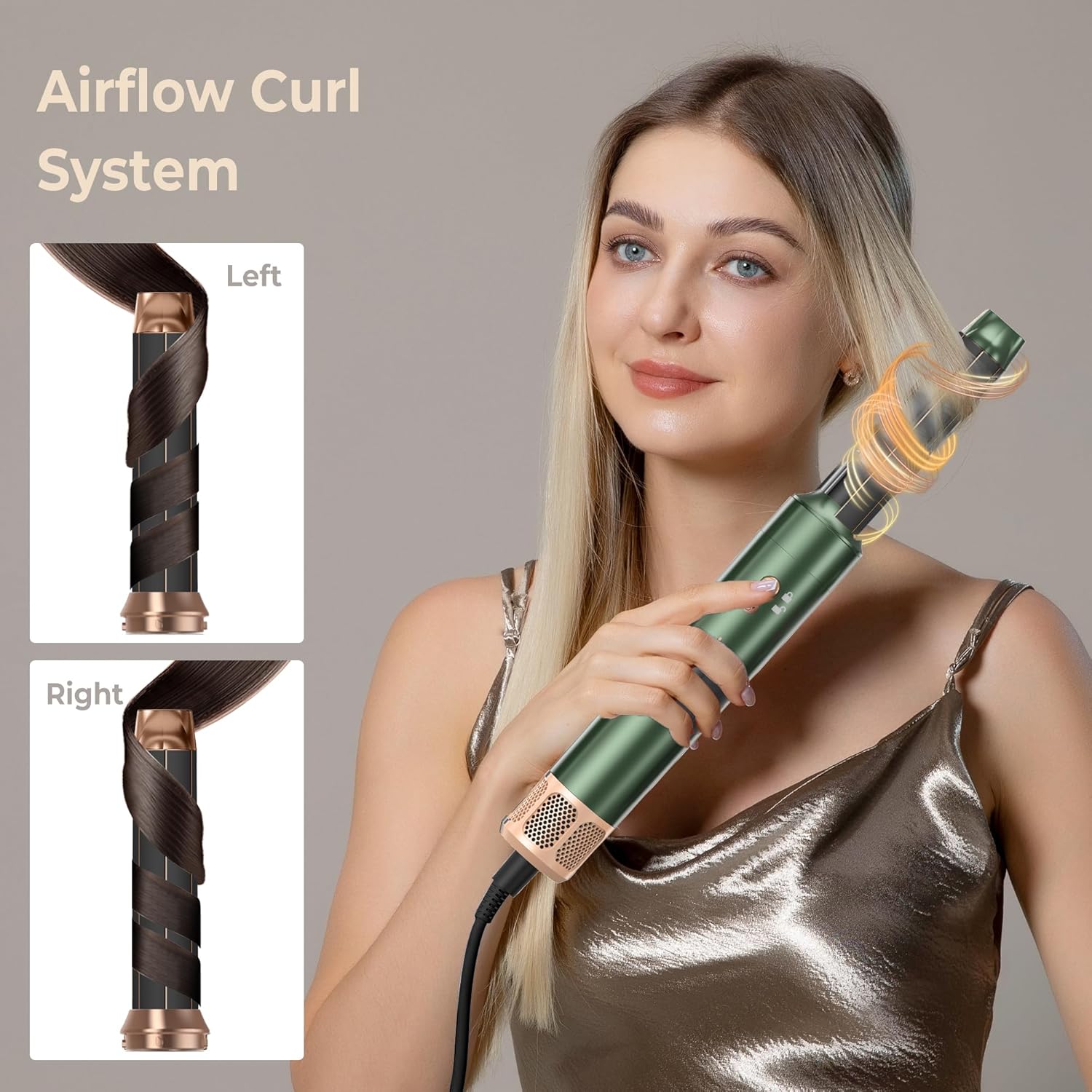 - 7-in-1 AIR HAIR STYLER WRAP SET: The hair dryer brush with diamond is equipped with a powerful brushless motor, our blow dryer brush contains 1 x hair dryer head, 1 x narrow dryer head, 1 x hair dryer with diffuser, 2 x air curling iron wrap, 1 x straightening brush, , 1 x round brush, the air styler wrap that makes fast curling, straightening, drying, volumizing, massaging. our brush hair dryers for women lightweight design and 360° swivel cord, no need to worry about tangled cords.