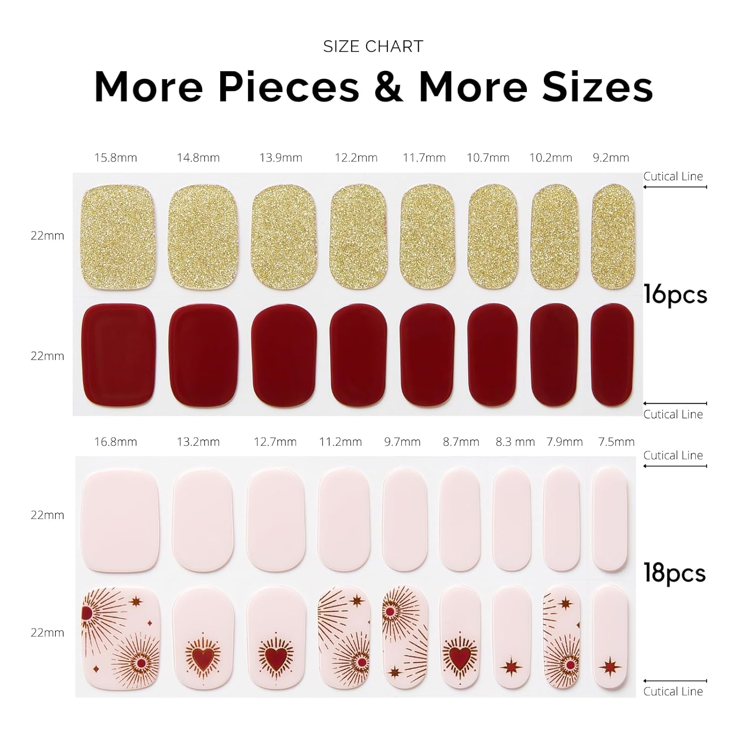 - ❤WHAT YOU GET: 34 Pieces gel polish strips in 17 sizes, 2 prep pads, 1 nail file, and 1 wooden stick. -Our semi cured nail strips are free from toxic, animal-derived, or harmful ingredients and are vegan, safe to use, and odorless. A perfect cost & time-saving DIY manicure kit.