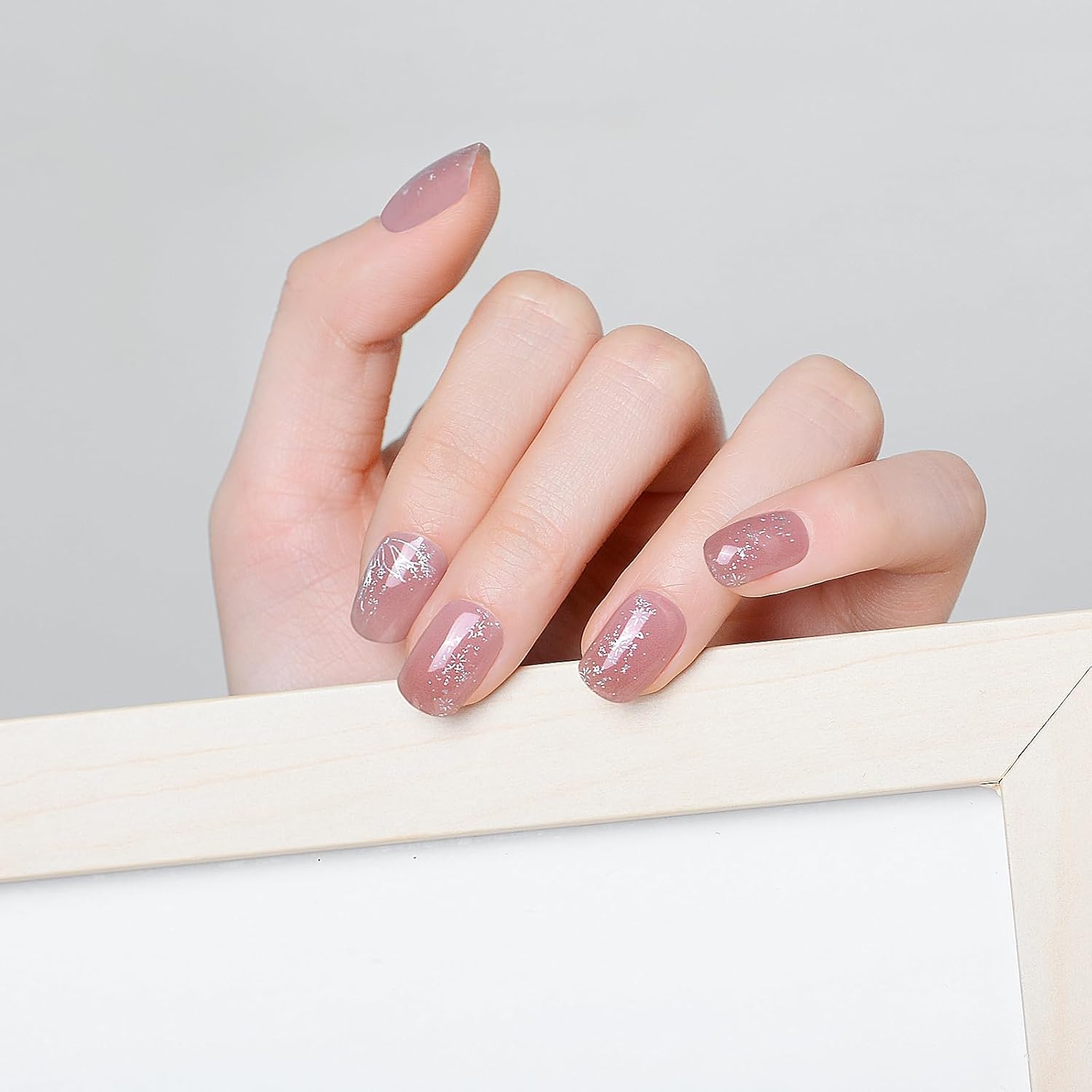• LIGHT PINK WITH GLITTER BUTTERFLY DESIGN SEMI CURED GEL NAIL STRIPS - Each stylish box includes 1 sheet with 10 sizes, totaling 20 strips in a unique blend of Light Pink With Glitter Butterfly hues, embodying sophistication and cuteness. Additionally, it provides adaptability with 2 strips per size, catering to various nail lengths.