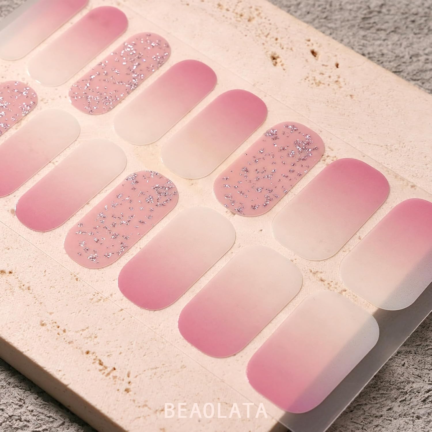 Nail Polish Strips, 32PCS Salon Quality Wraps, Long Lasting Gel Nail Stickers for Women Easy Apply& Remove (Cosmic Mist Pink)