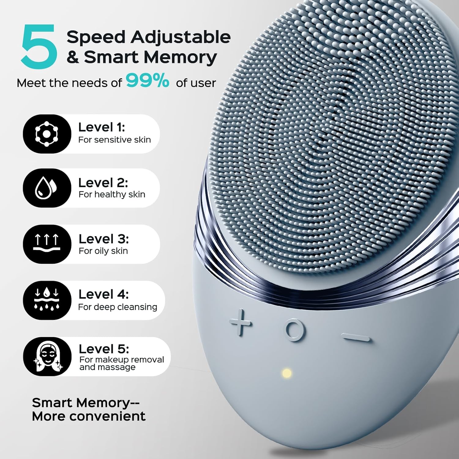• 5 Personalized Cleansing Settings for Every Skin Type: This facial brush is equipped with 5 vibration modes to meet different skin demands. Whether tackling stubborn pores, maintaining facial hair, or caring for sensitive skin, it ensures the right level of intensity for both comfort and effectiveness. Suitable for oily, dry, combination, and normal skin, it creates a spa-like ritual at home and is trusted by high school boys, college students, and busy adults balancing daily skin concerns