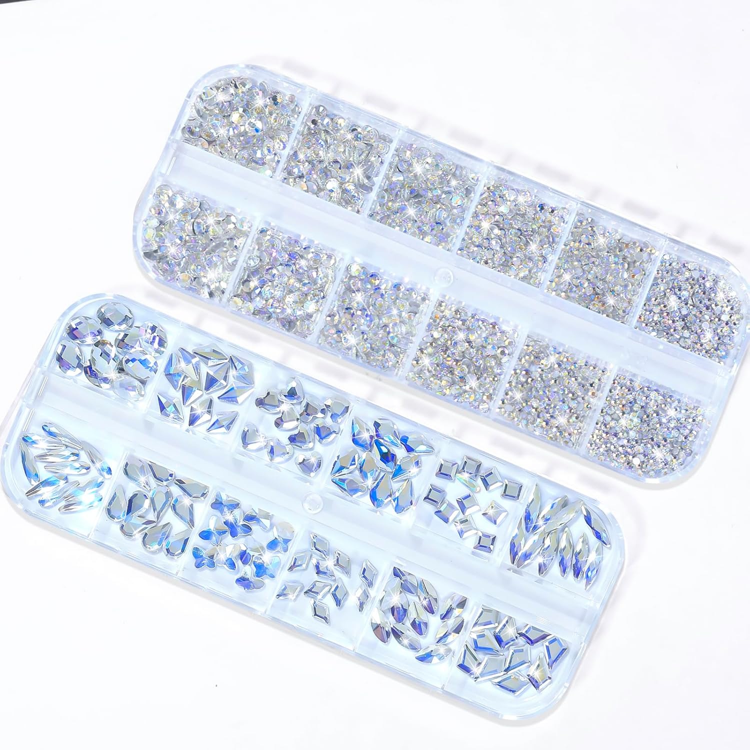 - ★Multifunction kit- Glass flatback rhinestones for manicures .Apart from nail art design, the package can be also used to decorate other items or add to your DIY crafting, such as phone cases, glasses, greeting cards, bags, and clothes.