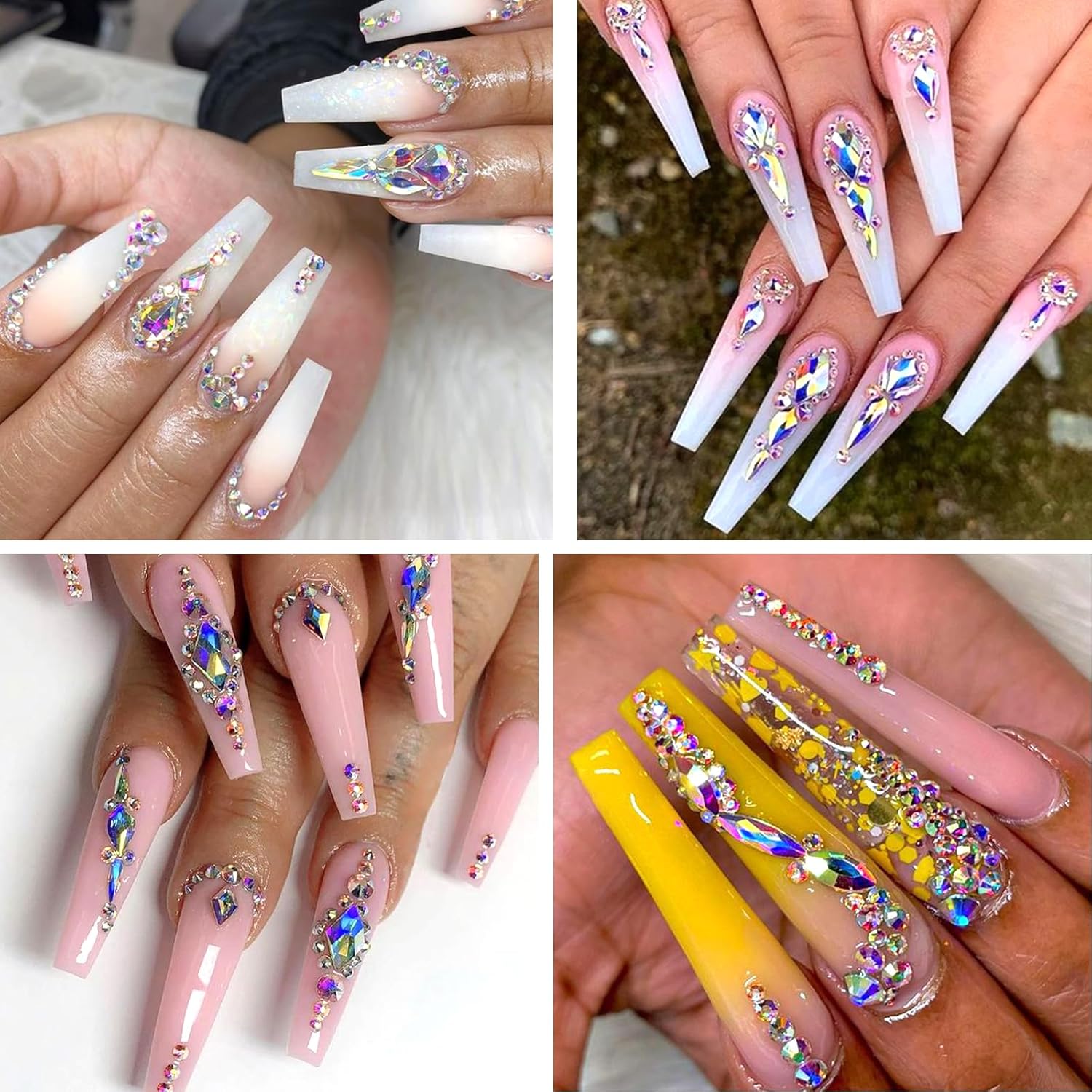 Nail Rhinestones - 3D Multi Shape Size, Flat Back, Manicure Rhinestones Charms, AB Gems, with Kit, for Nail Art, Bedazzling Acrylic Nails, DIY Decor