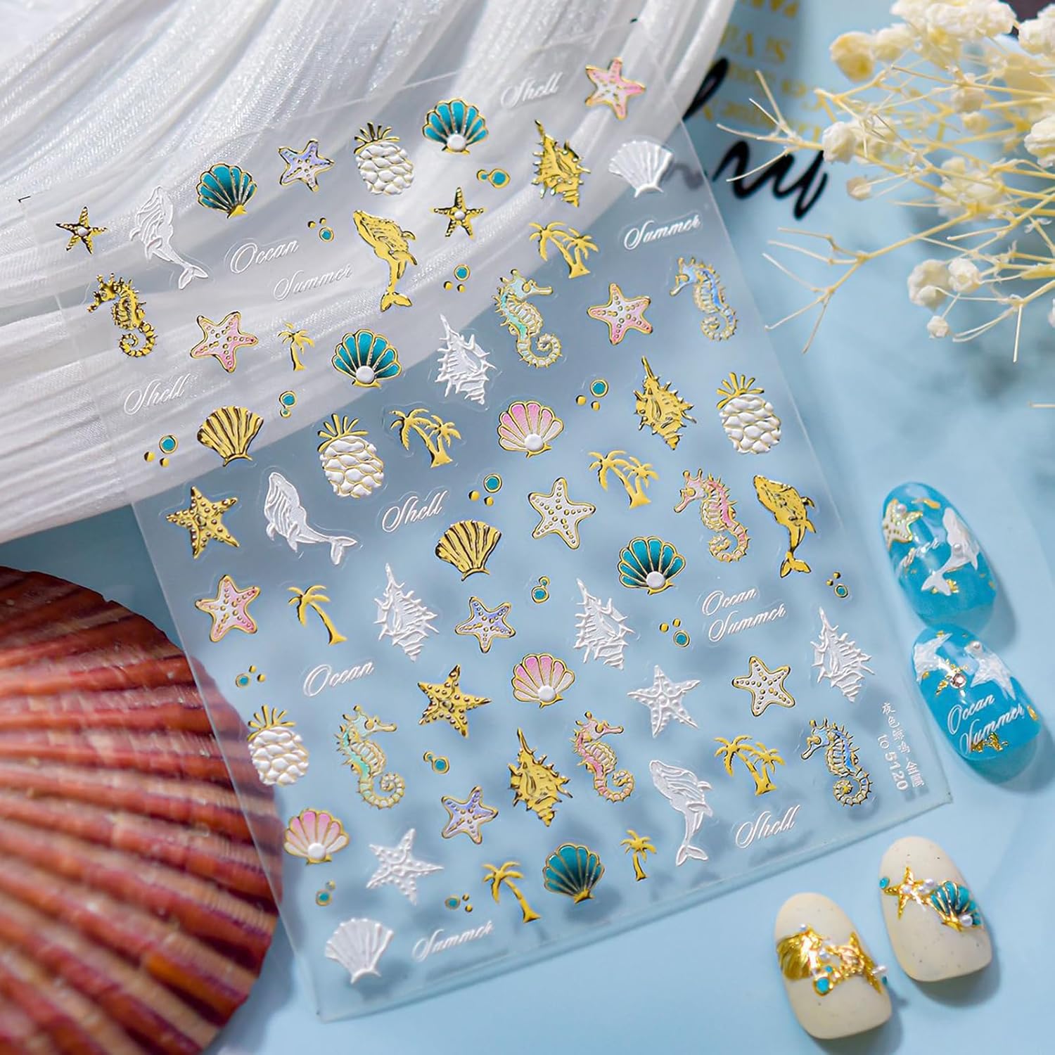 - Beautiful Design:5D seashell nail decals made from environmentally friendly material, the pattern is clear and beautiful,suitable for nail artists, nail enthusiast as well as women of all ages