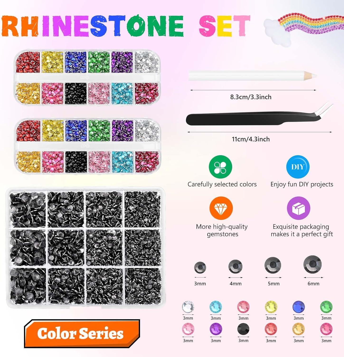 - What you will receive: The package contains about 10000 resin rhinestones, tweezers, and a pen for picking up gemstones