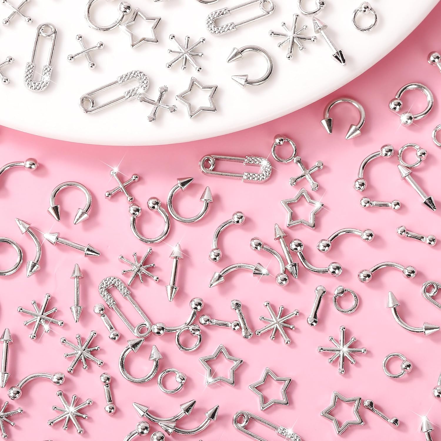 - Package of Nail Art Supplies Includes: 120 Pcs nail gems and charms in assorted styles, for nail decorations. The Y2K nail charms silver offer endless design possibilities to meet all your everyday needs