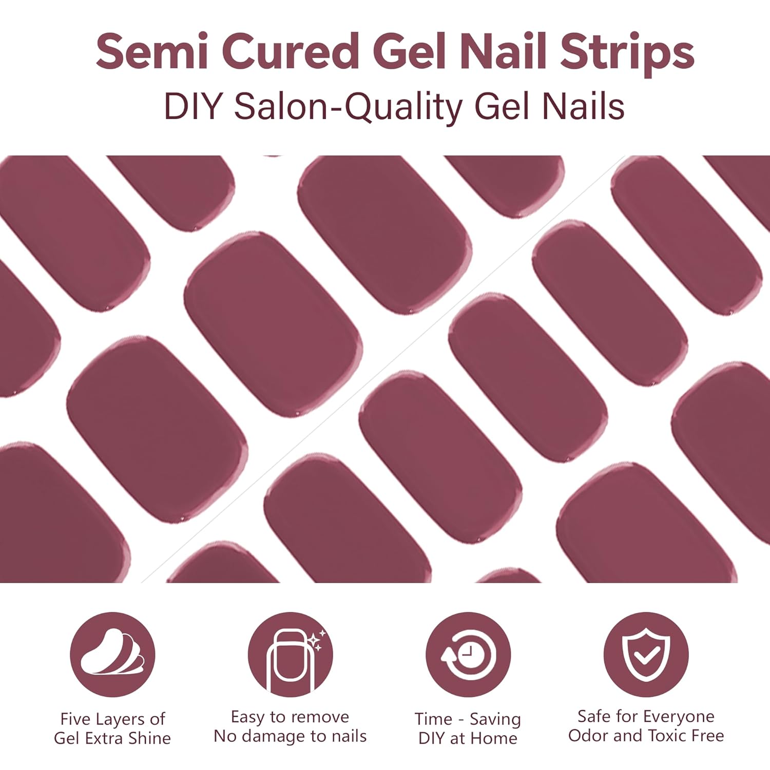 Semi Cured Gel Nail Strips-Salon Quality Semi-Cured Gel Press On Nails Stickers Perfect for Busy Women & Parents Works with Any UV/LED Lamps(Ochre)