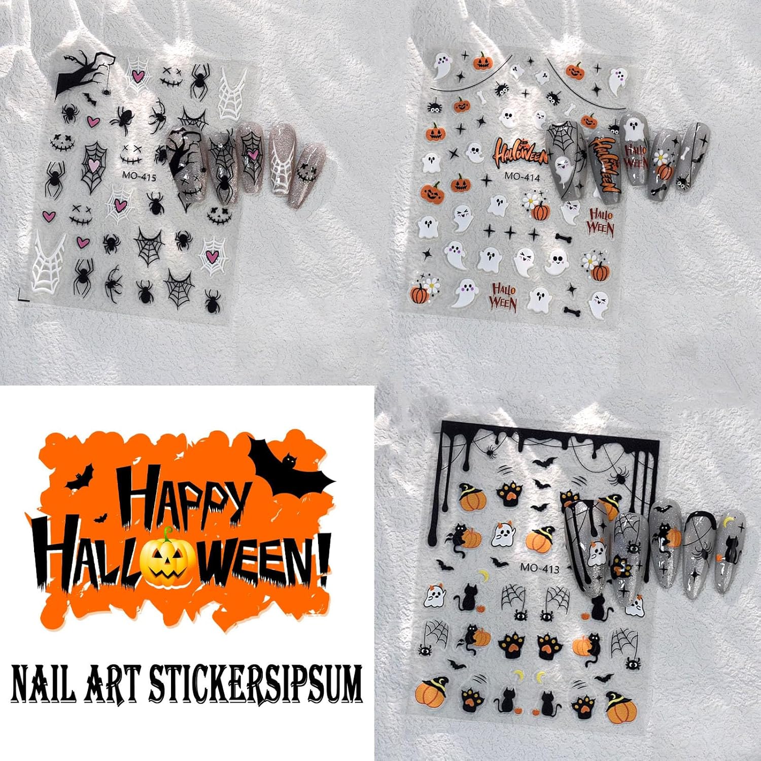 - Unique design: Halloween nail stickers use classic design nail stickers such as ghosts, spiders, pumpkins, bats, and skeletons, which perfectly match the atmosphere of Halloween and easily create your own fashionable fingertip shape