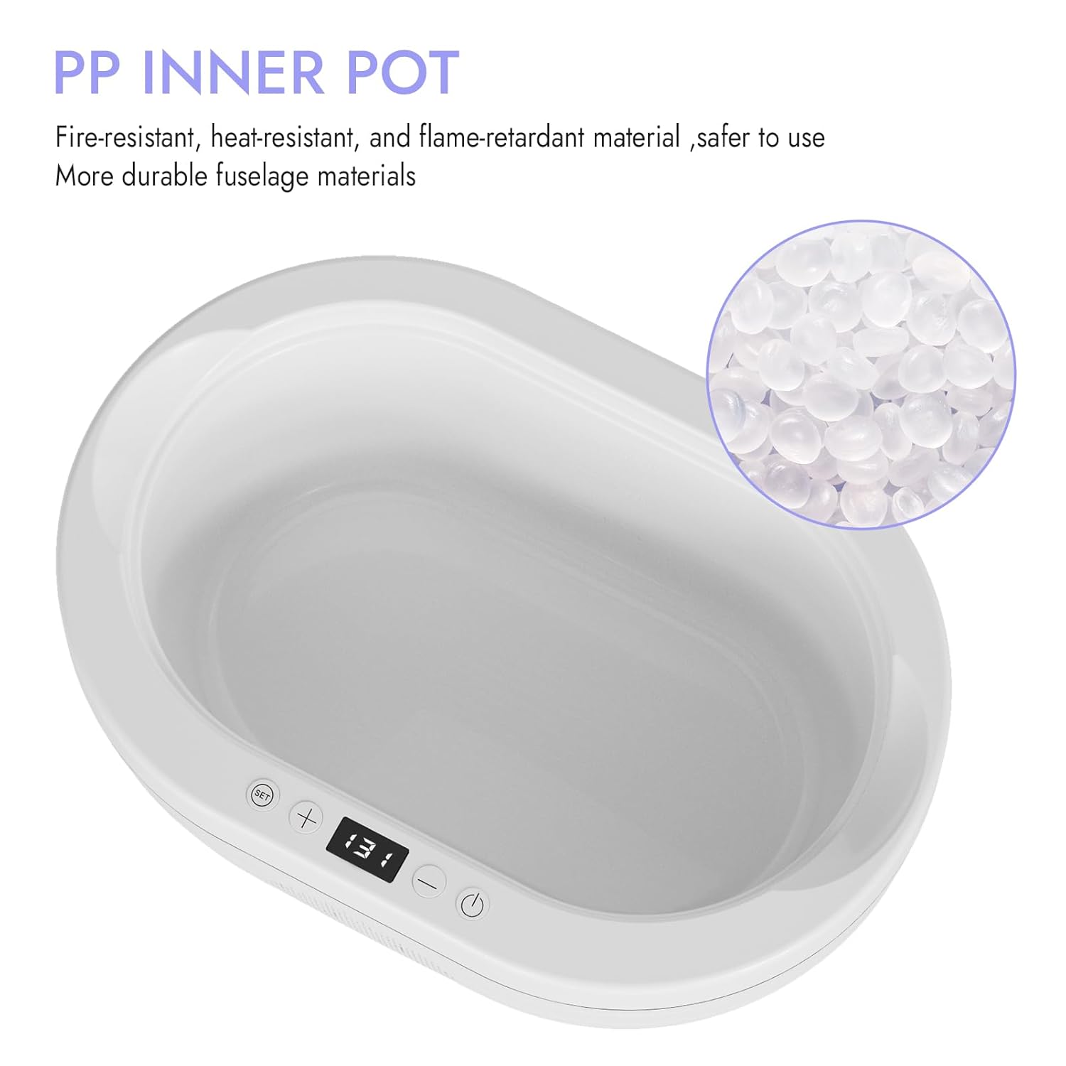 - š[Safety and Durability] paraffin wax machine has a capacity of 3000 ml for hand or foot use, and the plastic inner pot is made of PP flame retardant material for sturdiness and durability. It ensures safe and long-lasting use, giving you peace of mind and instant thermal benefits of at-home paraffin baths.