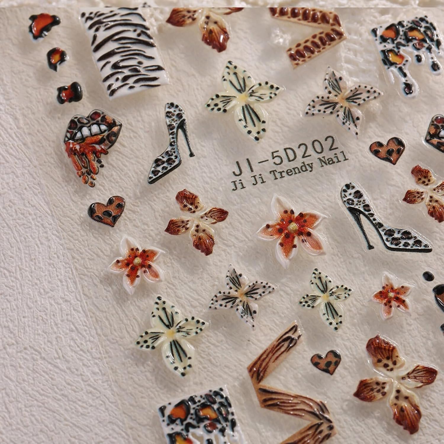 Fall Stickers para Uñas Nail Stickers Self-Adhesive Sticker para Uñas Leopard Print 3D Flower Floral Nail Stickers Art Design Accessories Hight Quality 2 Sheets