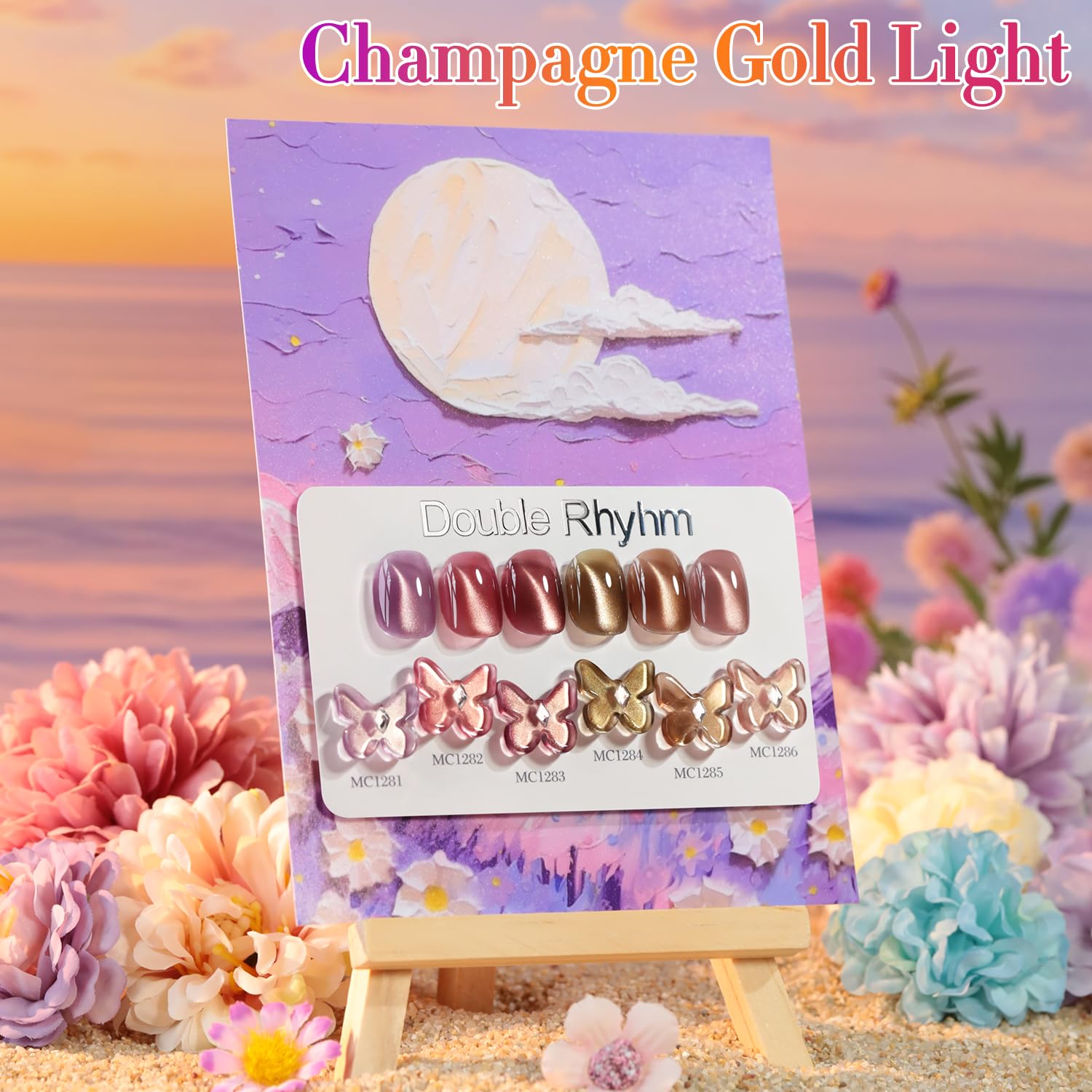 Double Rhythm Cat Eye Gel Nail Polish Set of 6 Same Color Same Bottle 0.5 Oz Shimmer Glitter with Magnet Holographic Reflective Magnetic UV Nail Polish Kit at Home (Rose Coffee Brown Red-T6-62)