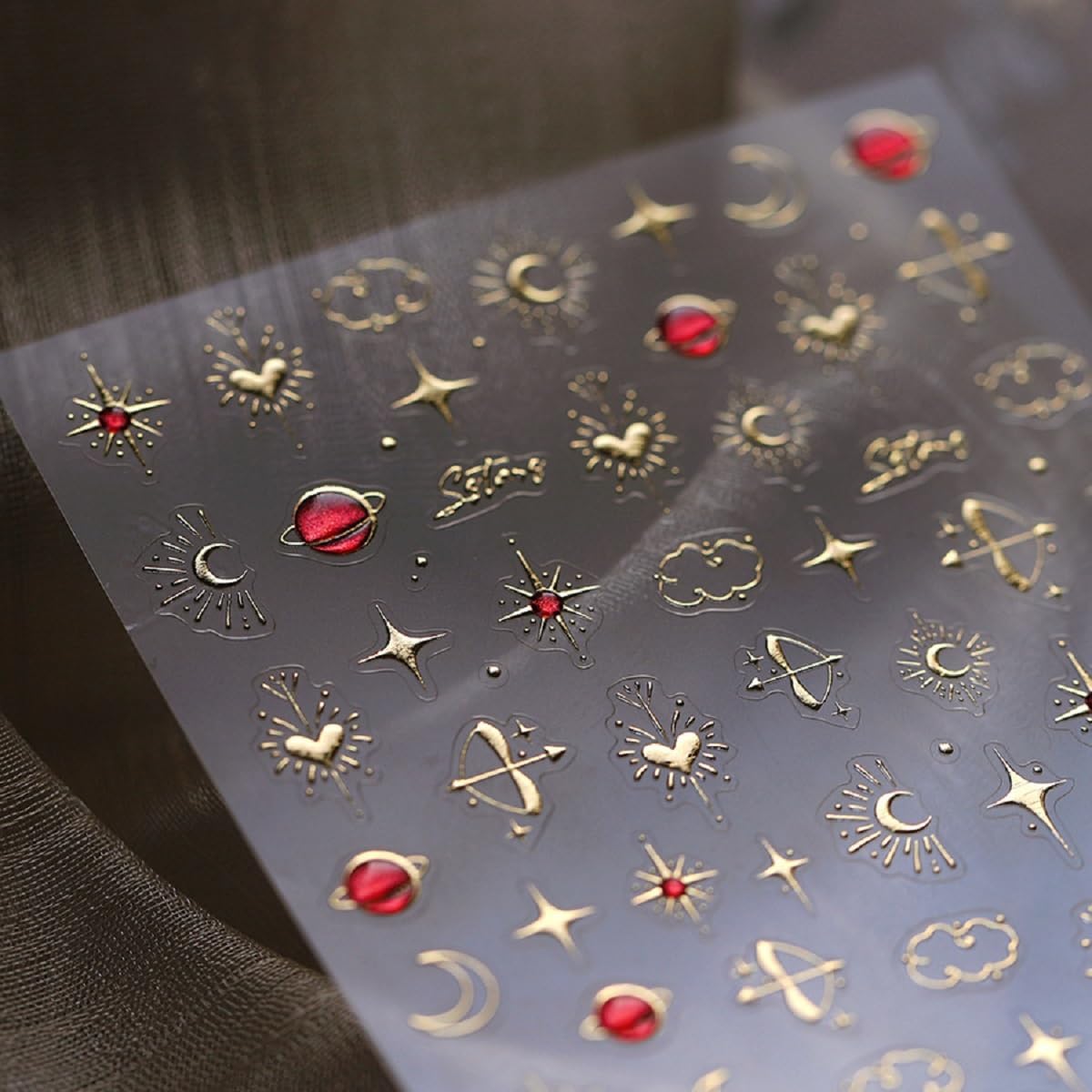 • Star Nail Art Decals:1 sheets of star nail stickers give you an advanced exquisite feeling.Gold heart elements nail decals, bright color and beautiful patterns designs, adding a touch of magic to any manicure