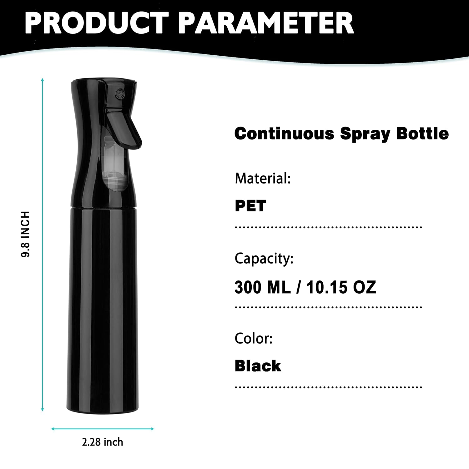 - High Quality: The continuous mist spray bottle is made of quality PET material with advanced technology, strong and not easily dented, durable and refillable. BPA-free, no smell, no leakage, and refillable. If anything goes wrong with your continuous spray bottle, please contact us directly.