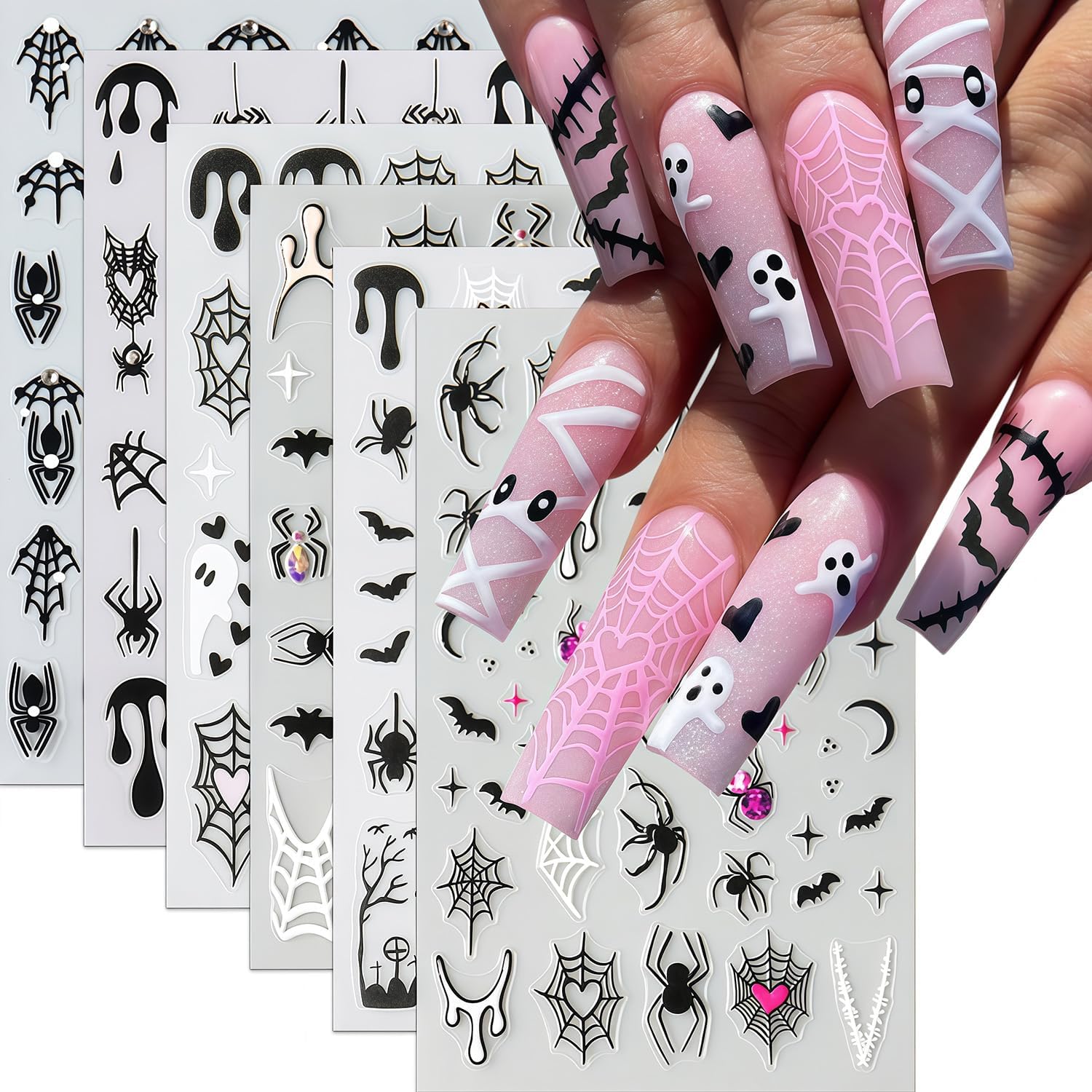 - Quantity: You will get 6 sheets of spider nail art stickers, including cute ghost and spider web spider bat designs, not easy to fall off or fade, can easily create a variety of themed nail art, meet various nail art needs