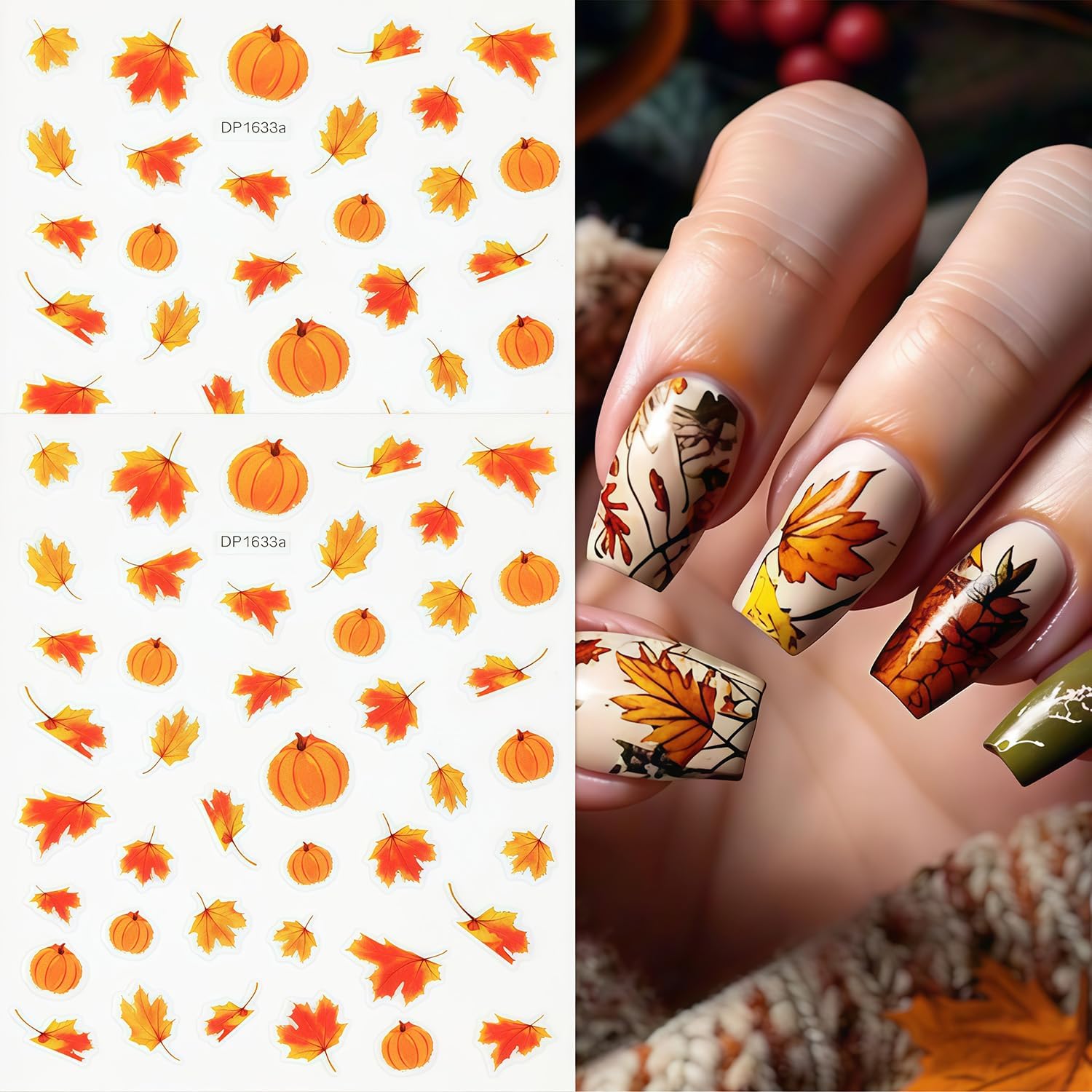 - Quantity: You will get 6 sheets of maple leaves nail art stickers, including cute pumpkin and leaf designs, not easy to fall off or fade, can easily create a variety of themed nail art, meet various nail art needs