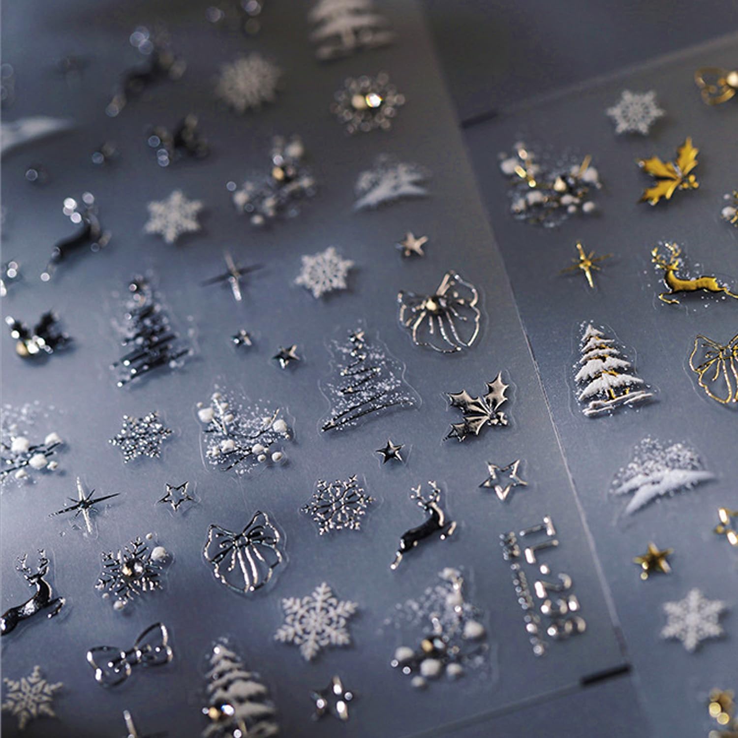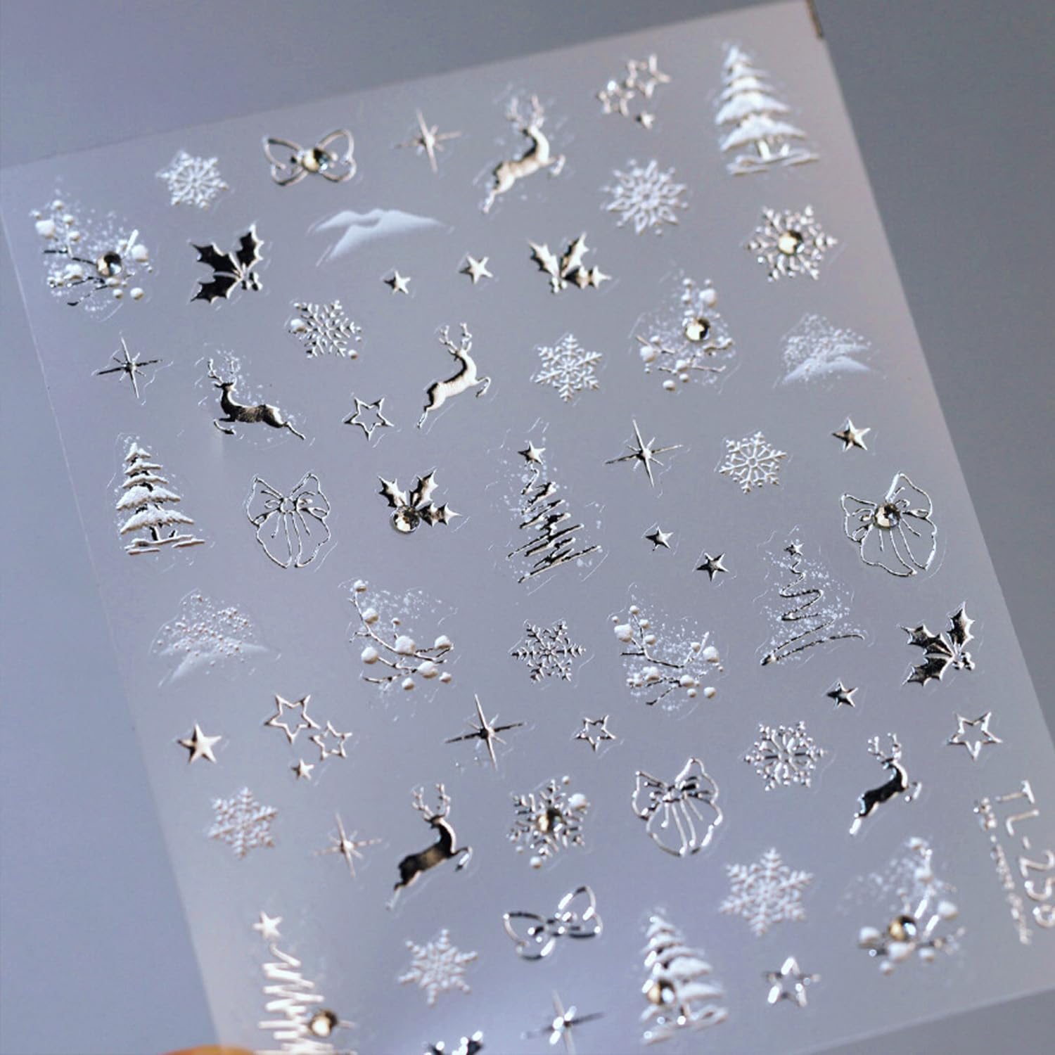 Christmas Nail Stickers for Nail Art Glitter Silver Reindeer Christmas Tree Nail Art Stickers Winter Xmas 5D Embossed Nail Decals 3D Self-Adhesive Nails Supply Manicure Sliders for Nails Decoration