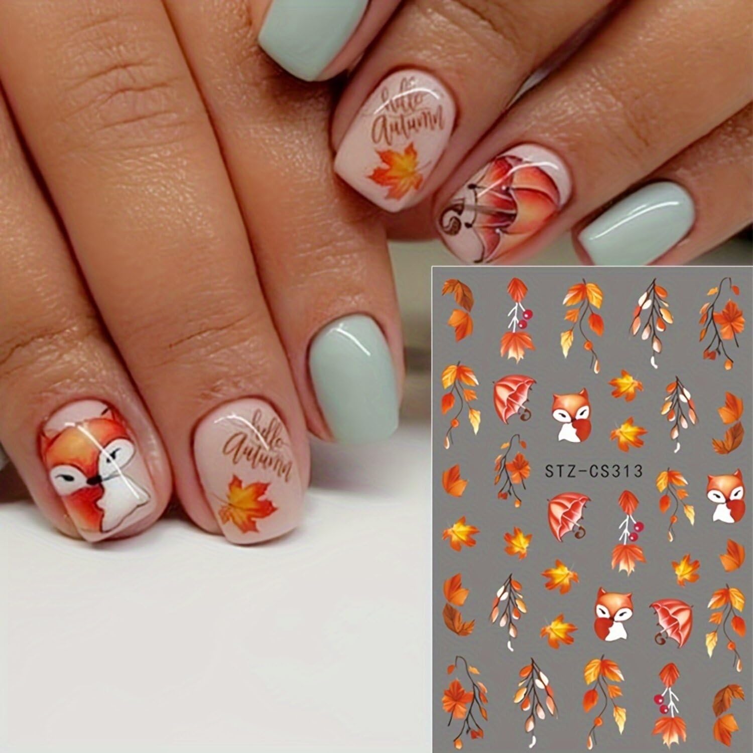 - Includes 5 sheets of high-quality nail art decals with charming motifs like cute fox, pumpkin, mushroom, and flowers. Perfect for fall nail art