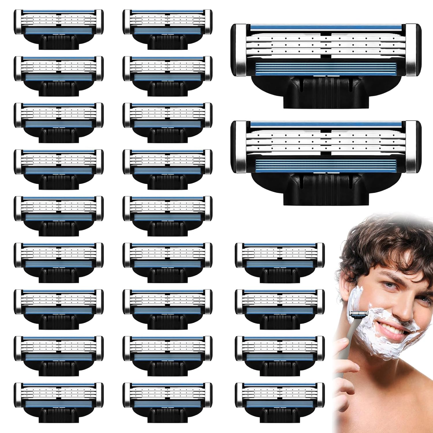 Razor Blades for Men - 24PCS Precision Compatible With Mach3 Razor Blades Refills for Men - Compatible With Mach Razor, Dual Lubrication for Close & Comfortable Shave