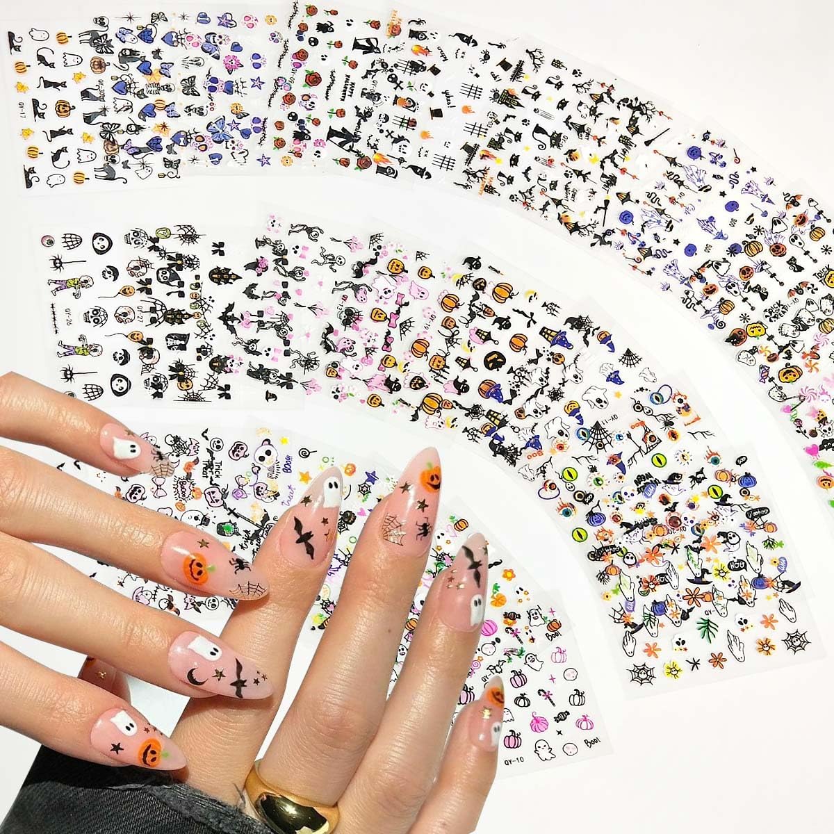 - Halloween Nail Decals: 30 sheets of spooky designs featuring ghosts, pumpkins, skeletons and spider webs. These self-adhesive stickers create instantly festive manicures, perfect for Halloween parties and trick-or-treat fun