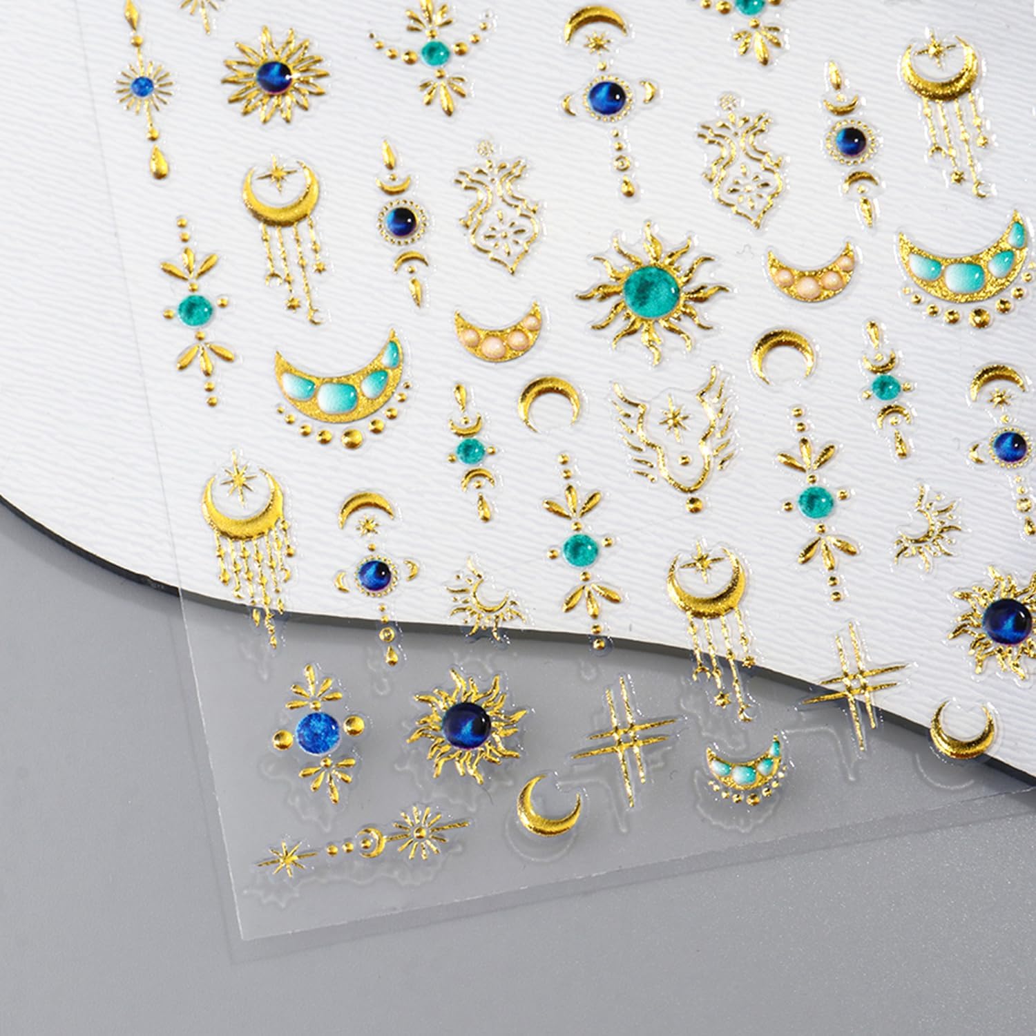 Gold Silver Star Moon Nail Art Stickers Decals Bohemia Nails Decals Self-Adhesive Nails Stickers for Nail Art