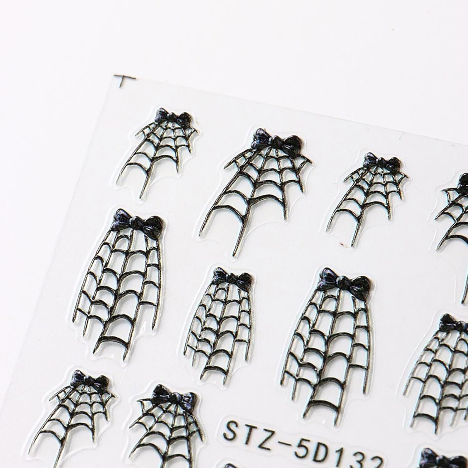 Spider Web Nail Stickers 5D Embossed Halloween Nail Decals for Press Ons 2PCS Self-Adhesive Black Cobweb Bow Design Halloween Nail Charms Holiday Nail Decorations Nail Art for Women DIY Manicure