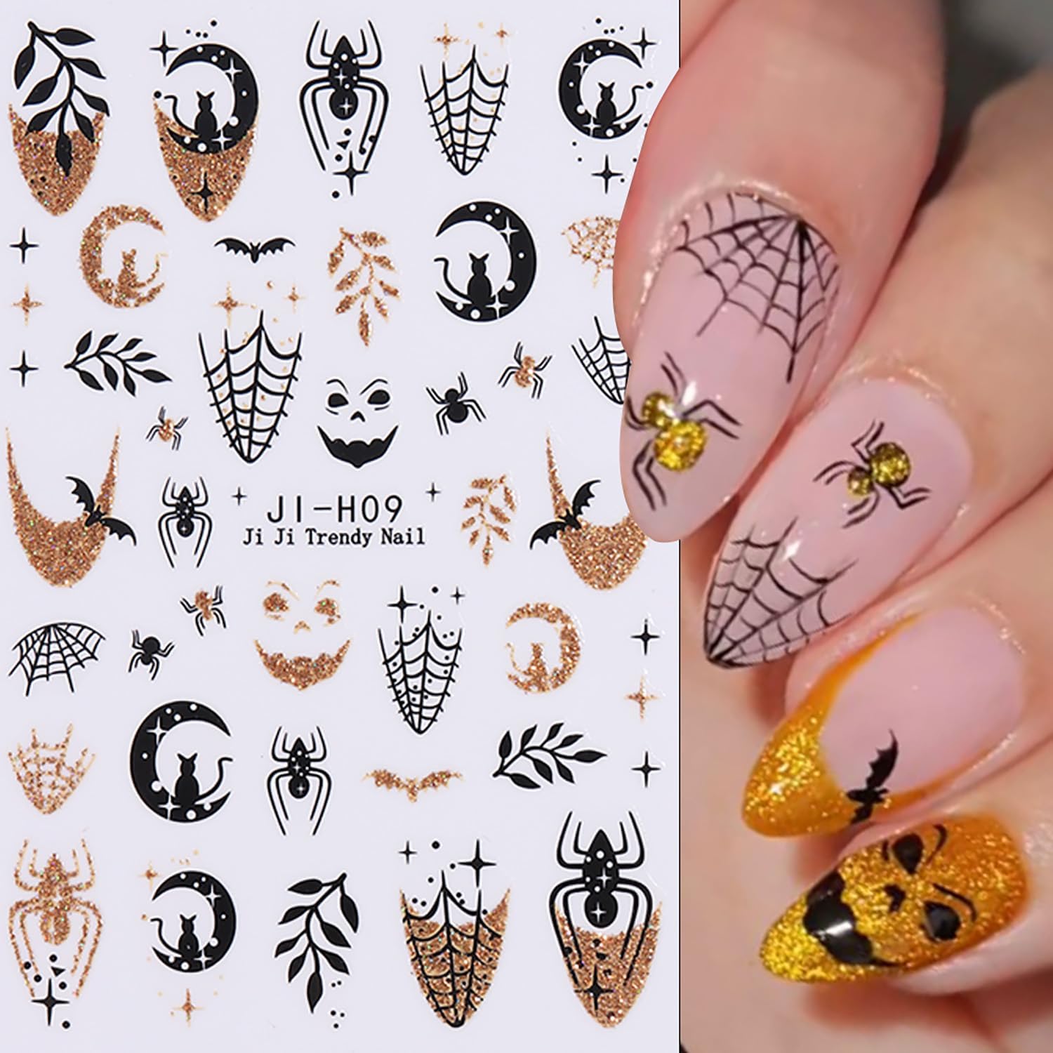- Package Contain: You will receive 6 sheets of glitter Halloween nail art stickers in 3.78×2.56in, catering to your rich imagination for daily nail DIY and uplifting your mood